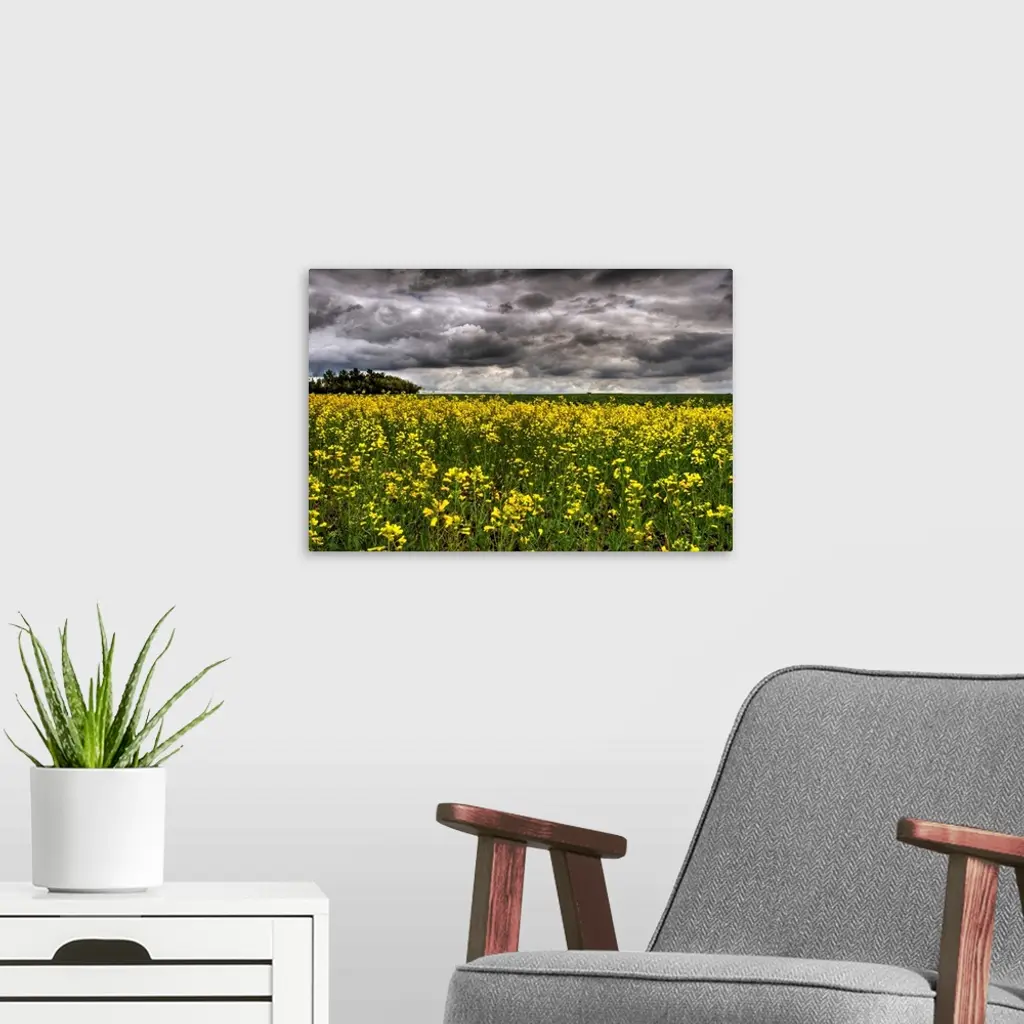 Summer Storm Clouds Over A Canola Field, Alberta, Canada wall art for home and office decor. Discover canvas art prints, photos, mural, big canvas art and framed wall art in GreatBigCanvas.com's varied collections.
