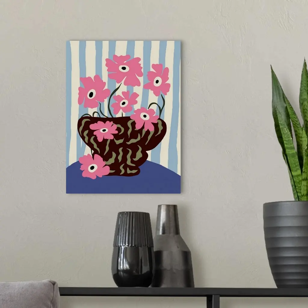 Summer Stripe And Pink Flowers wall art for home and office decor. Discover canvas art prints, photos, mural, big canvas art and framed wall art in GreatBigCanvas.com's varied collections.