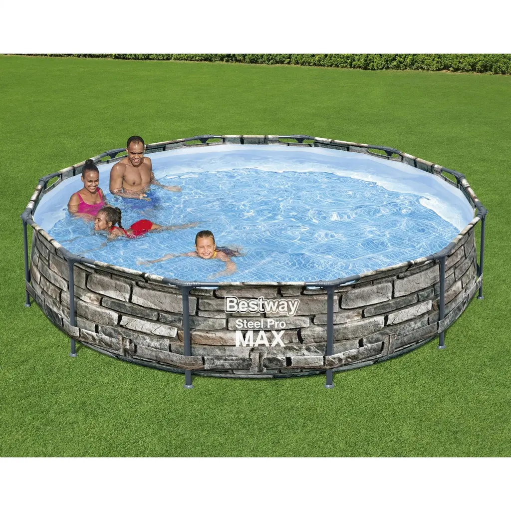 The Summer Waves 14 x 8 Foot 36 Inch Deep Dark Herringbone Print Elite Frame Rectangular Pool will look good in your backyard and offer a cooling oasis during the dog days of summer. Made with durable and puncture-resistant materials, this pool comes with a strong and sturdy metal frame to ensure the setup comes easy and that your swimmers will have a safe time. A filter system is included with this pool, giving you the cleanest water while your swimmers make a splash. This pool has a stylish Dark Herringbone exterior print to add an extra flair to your beautiful backyard. It also comes with a SureStep ladder for you to get into the pool conveniently and safely. Get the most of your summer cooling off in this premium pool. Enjoy some fun in the sun in style with the Summer Waves 14 x 8 Foot 36 Inch Deep Dark Herringbone Print Elite Frame Rectangular Pool. Ultra-strong oval metal tubes make for stronger than traditional round tubes on other framed pools Easy-to-use Model SFX600 SkimmerPlus Filter Pump (110-120 V with GFCI) will keep your pool water clean and refreshing Includes a SureStep ladder to ensure easy in and out access, Type D filter cartridge, and repair patch Made with durable and puncture-resistant material with a stylish Dark Herringbone exterior print and mosaic interior print Ready for water in 60 minutes Color: Grey Dimensions (L x W x H): 168 x 96 x 36 inches