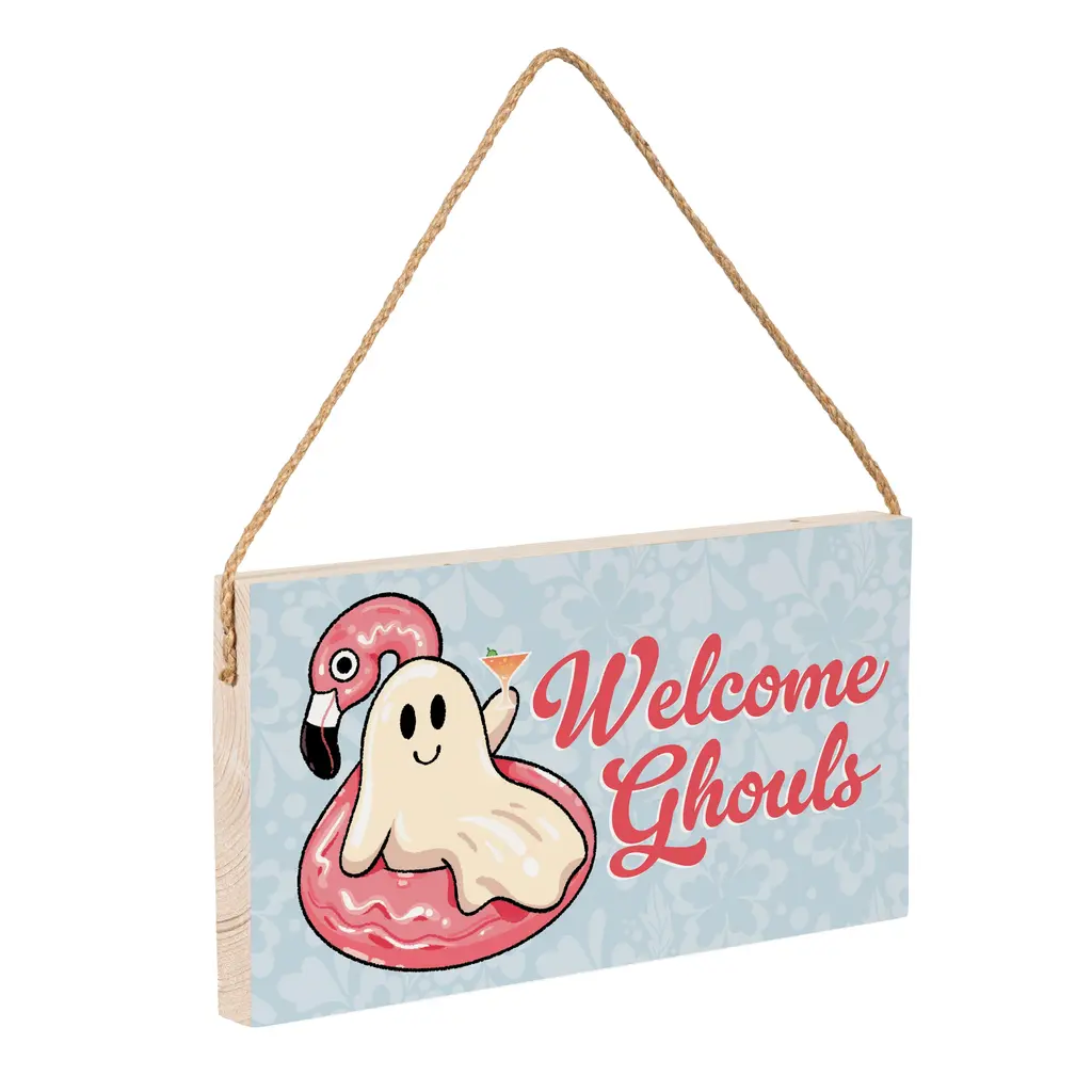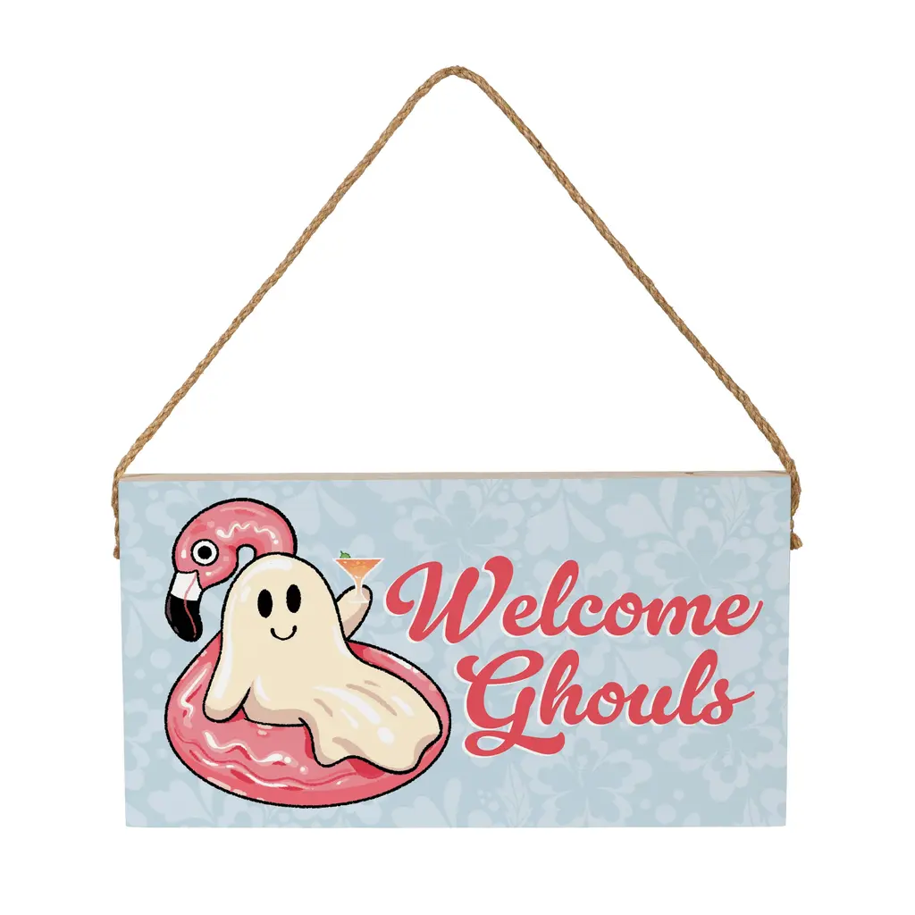 Summerweeen Hanging Sign, Welcome Ghouls, 11" L X 6" H