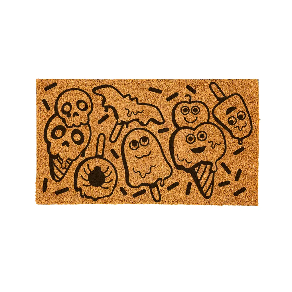 Give yourself a sweet treat without melting in the summer heat! This coir mat blends the best of both worlds, summer fun and Halloween charm, in some adorable scoops. Featuring cheerful ice cream cones with spooky little faces, this sign is the perfect pop of personality for anyone who loves their scares served with sprinkles. Place it in front of the door or anywhere that could use a taste of playful fright. Whether throwing a Summerween bash or just wanting decor to scream cute and creepy, this piece is sure to satisfy everyone's spooky sweet tooth. Who says Halloween has to wait until October?