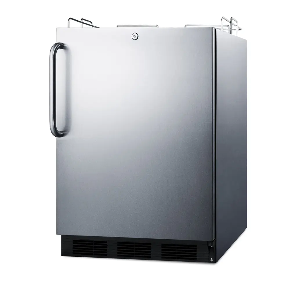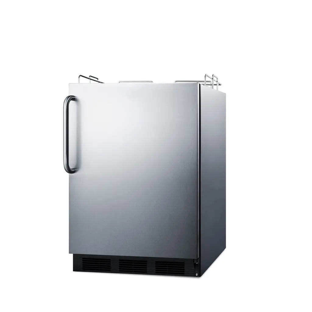 Summit brings unique appliance choices to ADA compliant settings with a new line of commercial beer dispensers made in Europe. Sized at 32 inches high and designed to fit under lower ADA compliant counters. The front-breathing design allows built-in installation, while the fully finished cabinet also enables freestanding use. Includes a guard rail and two-piece stainless steel drip tray for cleaner service. This unit does not include any tapping equipment, allowing "do-it-yourselfers" to customize their draft system.Features:Specifications: