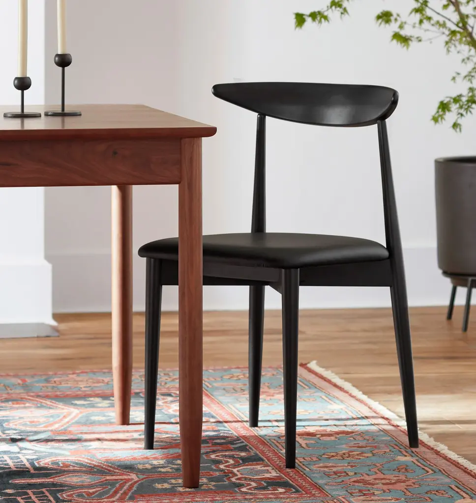 In a rich stained beech wood with a supple leather seat, our Sumpter Side Chair takes its cues from Mid-Century design. Quality materials, gentle curves, and a simple silhouette give the Sumpter classic style and endless versatility.