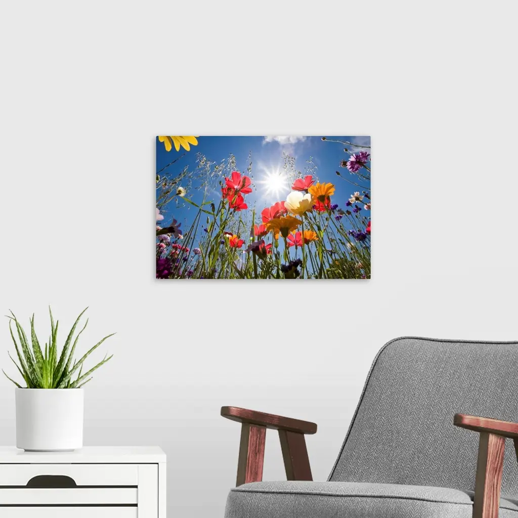 Sun And Clear Sky Above Wildflowers wall art for home and office decor. Discover canvas art prints, photos, mural, big canvas art and framed wall art in GreatBigCanvas.com's varied collections.