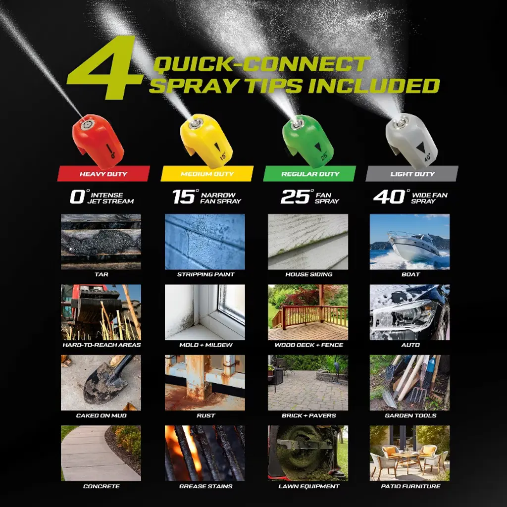 You Name It. You Aim It. Grime Is Gone®. When Grime Gets The Upper Hand, Fight Back Against Your Toughest Home, Outdoor And Auto Cleaning Tasks With The Sun Joe® Spx3000® Xtream. Combining Gas-Like Power With The Ease And Convenience Of Electric, The Sun Joe Xtream Is Made For Those Who Demand The Most From Their Machines. Its Robust 13-Amp Motor Packs A Powerful Punch, Quickly Generating Up To 2200 Pounds Per Square Inch Of Pressure To Break Down And Strip Away Dirt, Grease And Grime, And Up To 1.1 Gallons Per Minute Of Maximum Flow To Rinse Away Tough Oil Stains, Mold, Mildew, Caked-On Mud, Rust, Tar And Other Stubborn Dirt And Debris.The Secret To The Sun Joe Spx3000 Xtream’S Superior Performance Is Its Exclusive Xtream Triple-Action Power:Xtream Foaming: The Onboard Detergent Foam Cannon Aerates Detergent And Shoots It Up To 15 Feet Away For Maximum Coverage And Unmatched Adhesion To Help Remove Sticky Underlying Layers Of Dirt And Surface Grime.Xtream Cleaning: 4 Quick-Connect Nozzles (0º, 15º, 25º, 40º) In A Range Of Spray Patterns From Pinpoint Jet To Fan Spray Tackle Heavy, Medium And Light Duty Jobs.Xtream Rinsing: The Powerful 14.9-Amp Motor Generates Up To 2200 Psi Of Pressure And 1.1 Gpm Of Flow To Rinse Away Dirt + Grime For A Sun Joe Shine.Packed With A Host Of Handy Features, The Sun Joe Xtream Is Primed To Win The War On Grime! It Includes A Rugged 20-Foot, Steel-Reinforced, High-Pressure Hose And A Durable Stainless Steel Lance With Solid Brass Fittings, The Same Quality Construction You’D Expect To Find On Commercial Gas-Powered Pressure Washers. It’S Also Equipped With A 35-Ft Power Cord With Gfci Protection And A Handy Onboard Storage Compartment To Neatly Store Your Accessories (Sold Separately). Plus, Its Exclusive Tss (Total Stop System) Technology Means The Sun Joe Xtream, Unlike Gas-Powered Pressure Washers That Run Loudly And Continuously, Automatically Shuts Off Both Pump And Power When The Trigger Is Not Engaged To Save Energy, Prolong Pump Life, And Ensure Quieter Operation When Not In Use.Only The Sun Joe Xtream Provides The Versatility You Need To Tackle A Variety Of Cleaning Projects. With 4 Onboard Quick-Connect Nozzles, You Can Quickly Customize The Clean To Suit The Task. And When Your Cleaning Blast Needs A Detergent Boost, Simply Click To Connect The Included Foam Cannon.But Don’T Just Take Our Word For It! The People Have Spoken – Check Out The Thousands Of 5-Star Reviews That Have Made Sun Joe America’S Leading Brand Of Electric Pressure Washers!Plus, Every Spx3000 Xtream Is Backed By Sun Joe’S Rock-Solid 2-Year Warranty For Continuous, Reliable Performance You Can Count On Season After Season.From Porch To Patio, Auto, Rv, Boat, Deck And Driveway — When There’S Dirty Work To Be Done, Take It To The Xtream And Go With Joe®.