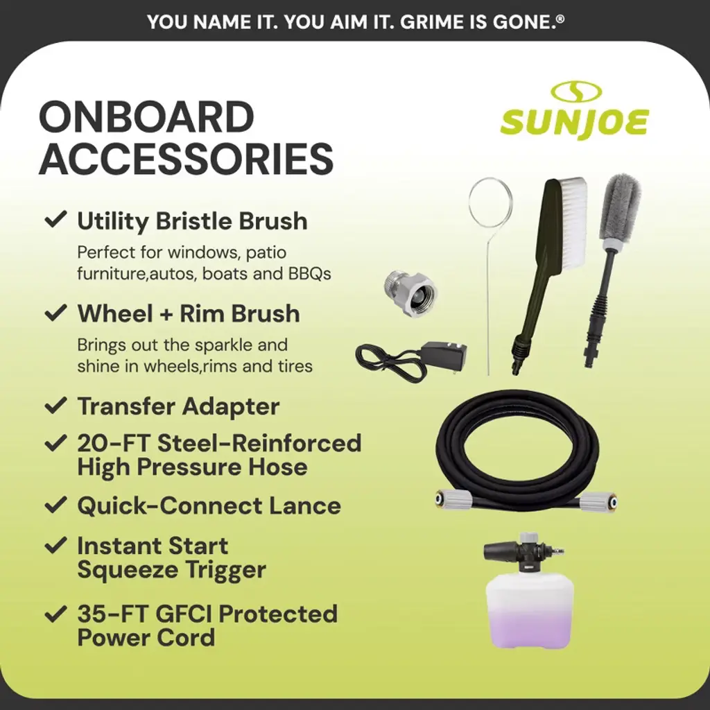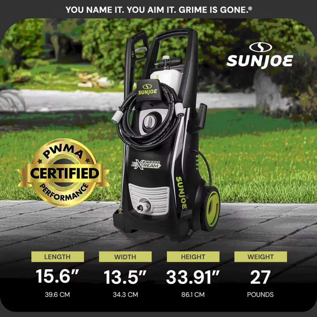 Sun Joe Xtream Electric Pressure Washer, 4 Nozzle Foam Cannon With Wheels And Bristle Brushes, 20 Ft Hose And 35 Ft Power Cord, Spx3000-xt1