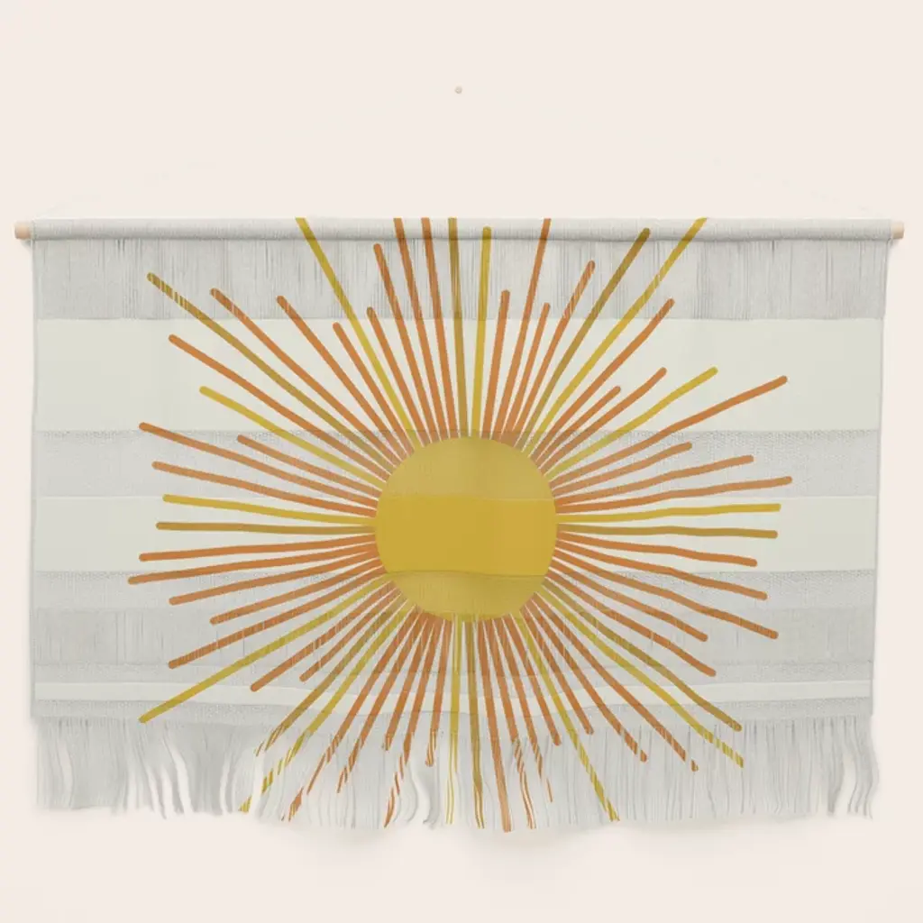 Sun - Mid Century Modern Multicolor Sunburst On Orange Wall Hanging