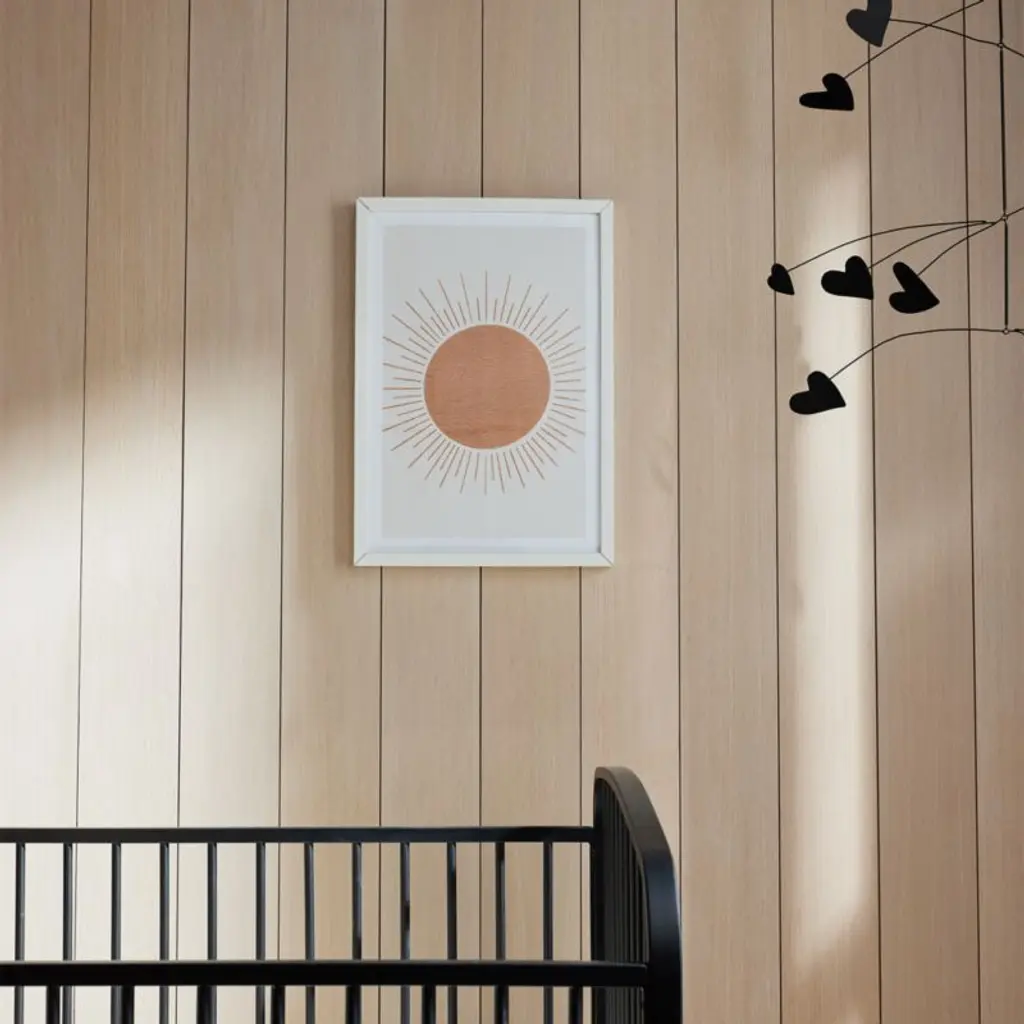 Bring classic cool into the kids room with this mid-century inspired print. A golden sun surrounded by rays creates a timeless, minimalist vibe that's perfect for chic nurseries or kids spaces with elevated decor. A stylish addition to any gallery wall, the Sun Ray Mid-Century Wall Art is easy to coordinate, mix and match.