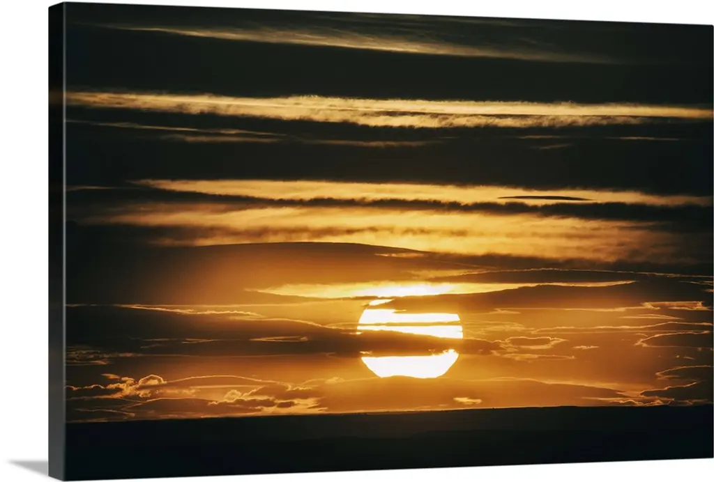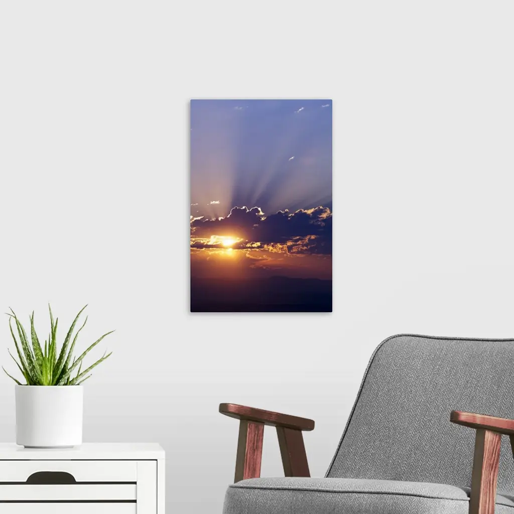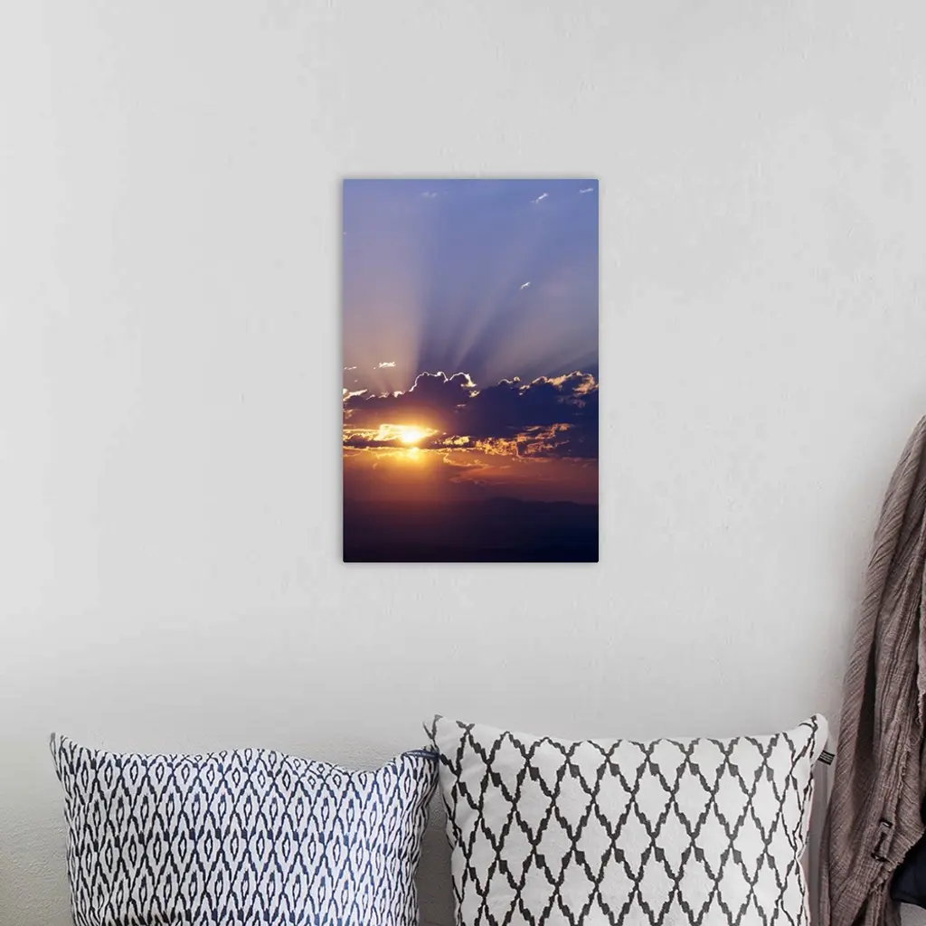 Sun rising behind clouds, silhouetted mountain range, Montana wall art for home and office decor. Discover canvas art prints, photos, mural, big canvas art and framed wall art in GreatBigCanvas.com's varied collections.
