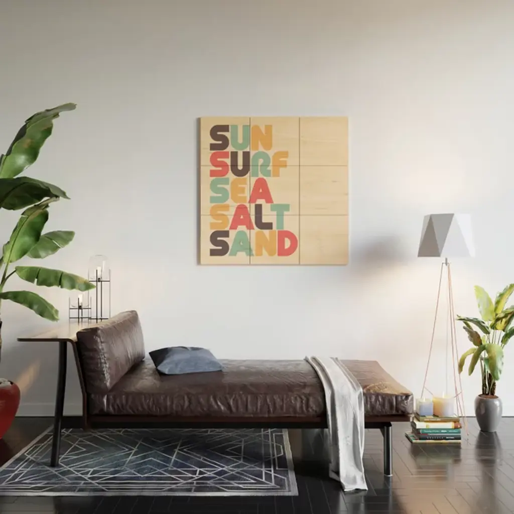 Sun Surf Sea Salt Sand Typography - Retro Rainbow Wood Wall Art