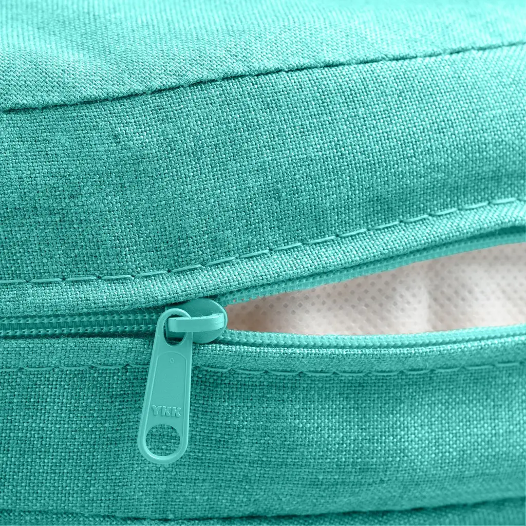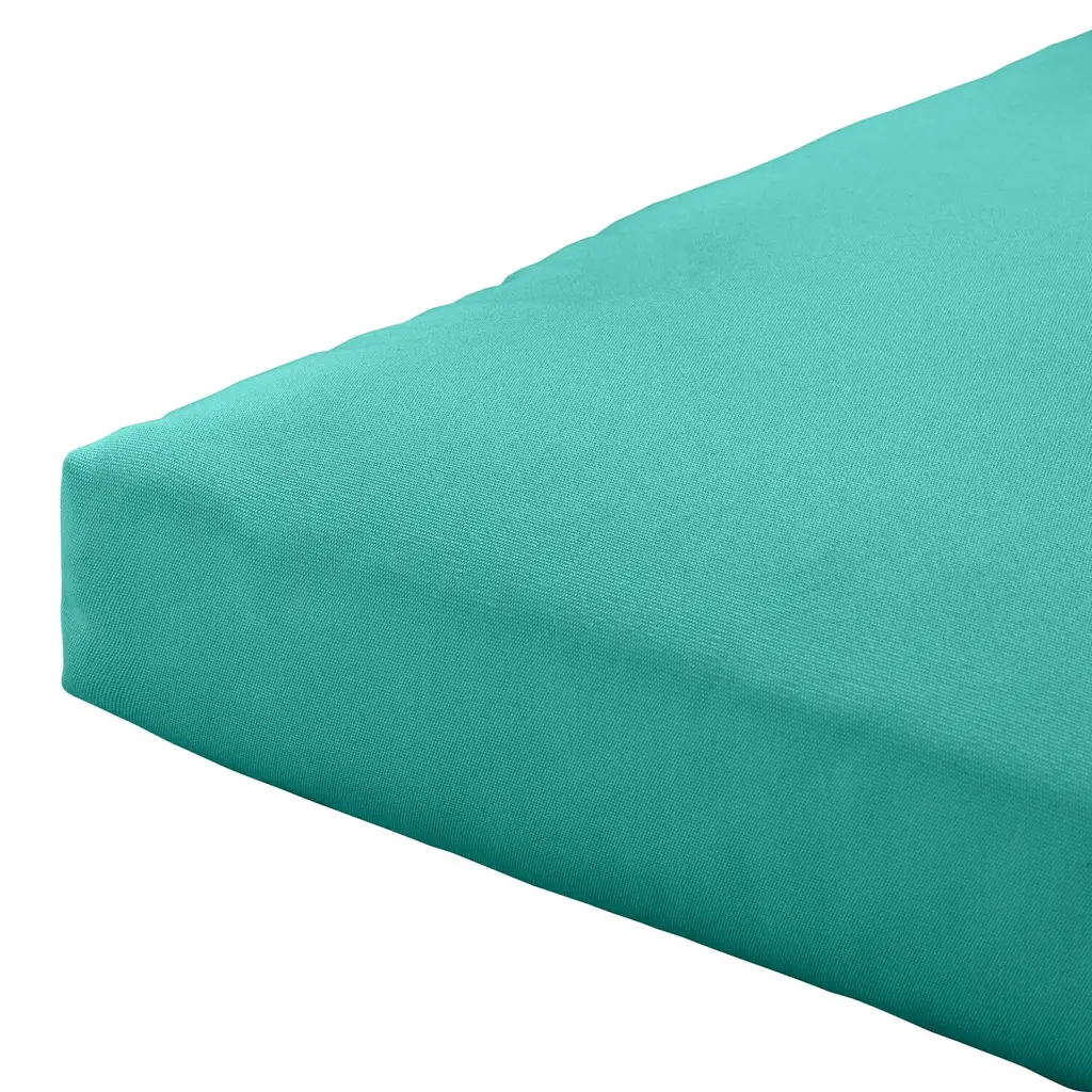 Featuring a solid bright aqua canvas-like Sunbrella cover, our premium custom-made cushion updates the look and feel of your favorite seat. Sunbrella performance fabric is crafted of highly saturated, U.V.-stable pigments that don't fade, it resists mold and mildew and is durable and easy to clean. Since 1961 Sunbrella has produced innovative materials while striving to make minimal impact on the environment and never sacrificing beauty or style.