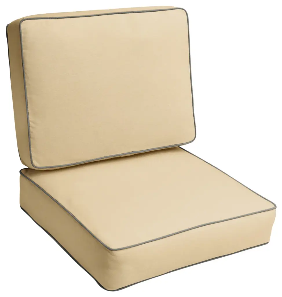 Sunbrella Canvas Antique Beige Corded Deep Seating Cushion Set, 23.5x23