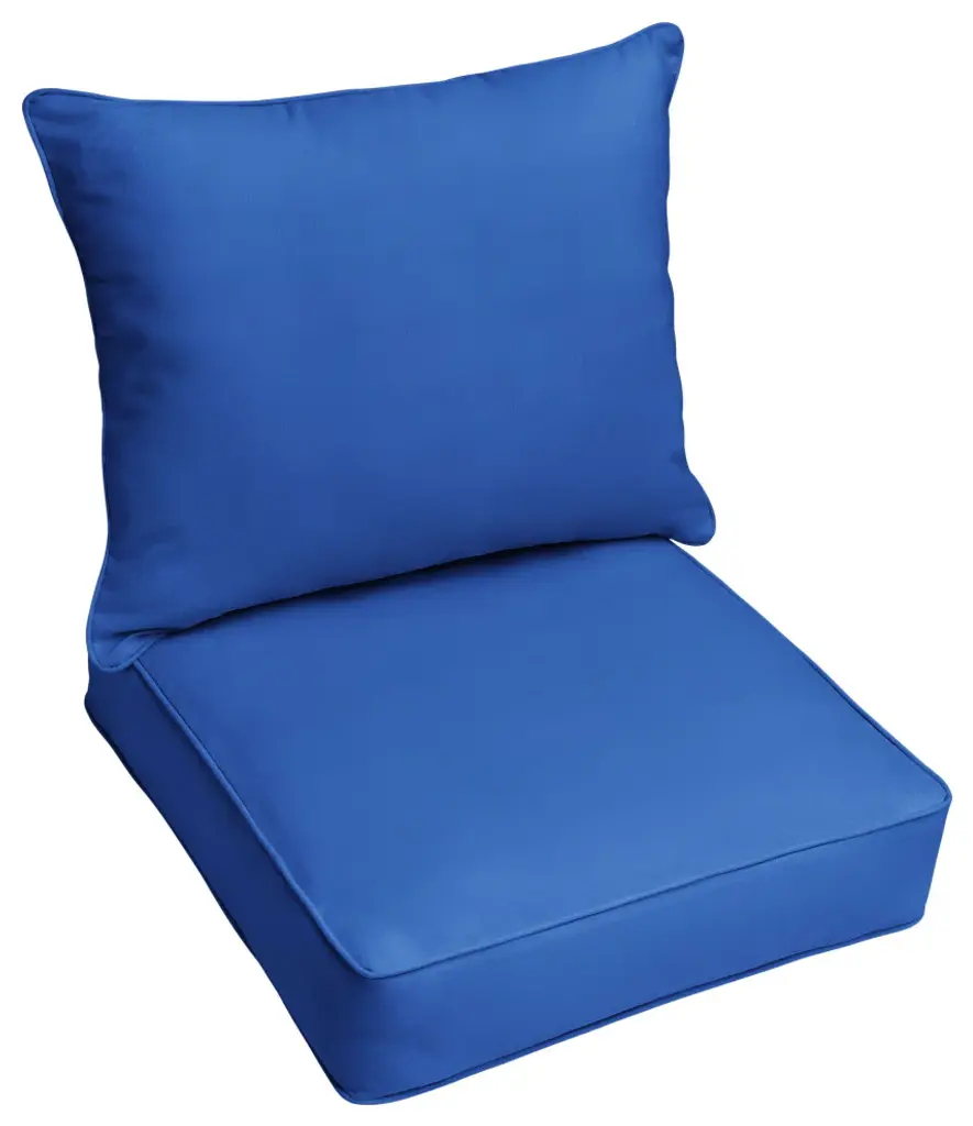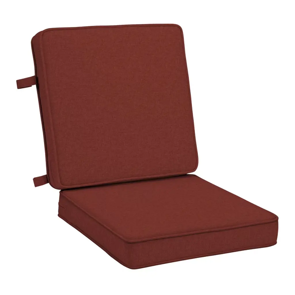Bring a stylish influence to a patio setting with this beautiful outdoor chair cushion set. A seat and back cushion team up to provide endless comfort with a fill of pure recycled fiber. Wrapped in sun and moisture-resistant outdoor fabric, it delivers long wear in the elements. Cleaning is easy with removable covers and zipper enclosures. This outdoor chair cushion set adds a splash of color to coordinate and complement the balance of an outdoor furniture ensemble, and it also works nicely in an inside casual space.
