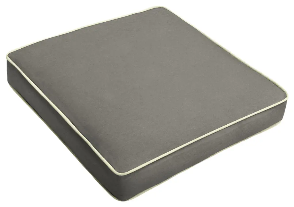 Multitonal shades of light Gray make this Sunbrella Canvas Granite fabric a seamless neutral addition to your home decor. Customize a patio furnishing group with this tastefully crafted outdoor chair cushion. A beautiful neutral hue offers a base to build on as you create an attractive poolside or garden arrangement. Filled with durable, soft recycled polyester fiber, its durable outdoor fabric cover ensures protection against sun and moisture damage to offer peace of mind for long use outdoors. Remove its cover through a zippered enclosure to launder with spot-cleaning, and secure to a chair with attached ties. Ready to coordinate and complement any colorful print or solid motif, this neutral outdoor chair cushion is a perfect fit for a casual indoor chair as well.
