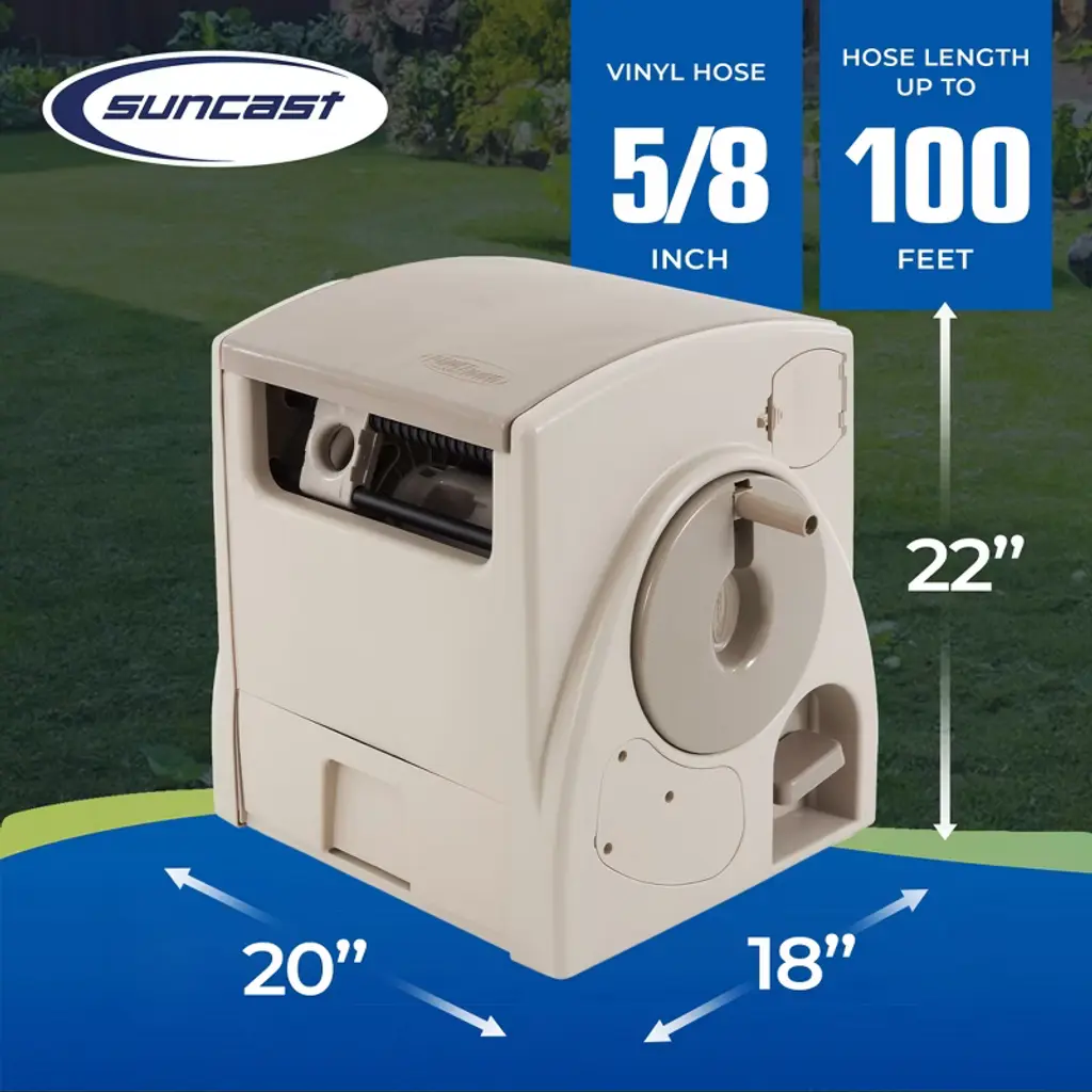 Suncast 100-ft. Powerwind Automatic Rewind Hose Reel, Light Taupe (2 Pack)