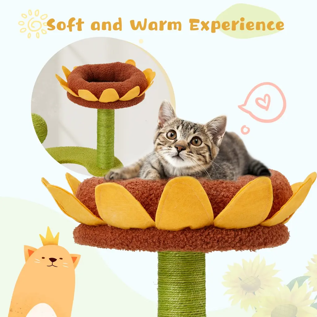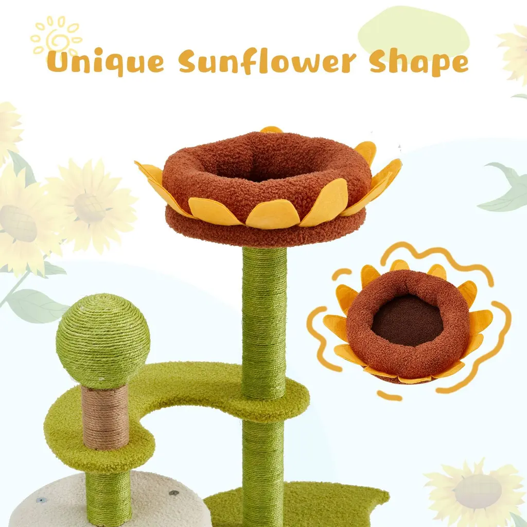 Sunflower Cat Tree, Multi-Functional Cozy Cat Tower, Cat Condo For Indoor Cats - Sunflower