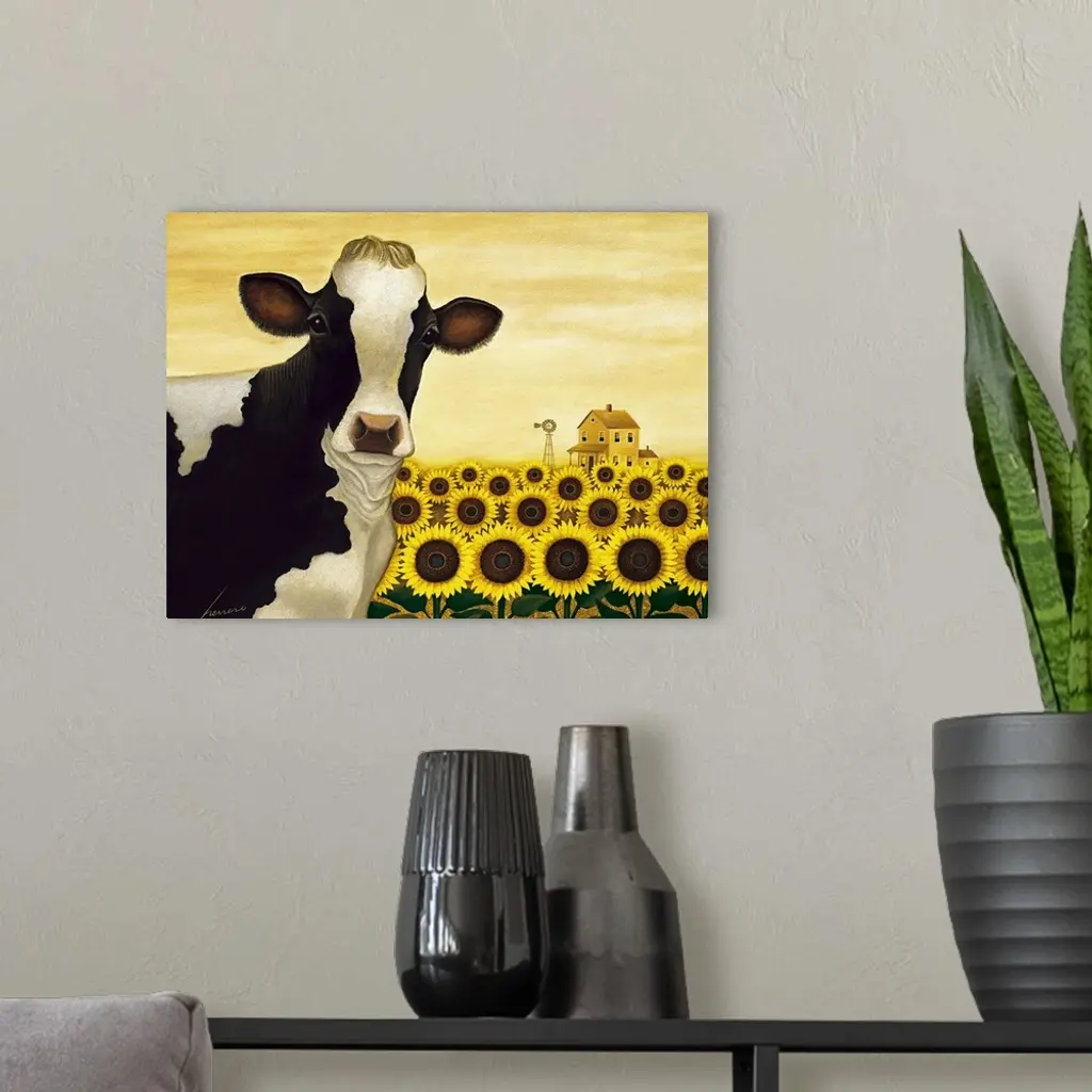 Sunflower Cow wall art for home and office decor. Discover canvas art prints, photos, mural, big canvas art and framed wall art in GreatBigCanvas.com's varied collections.