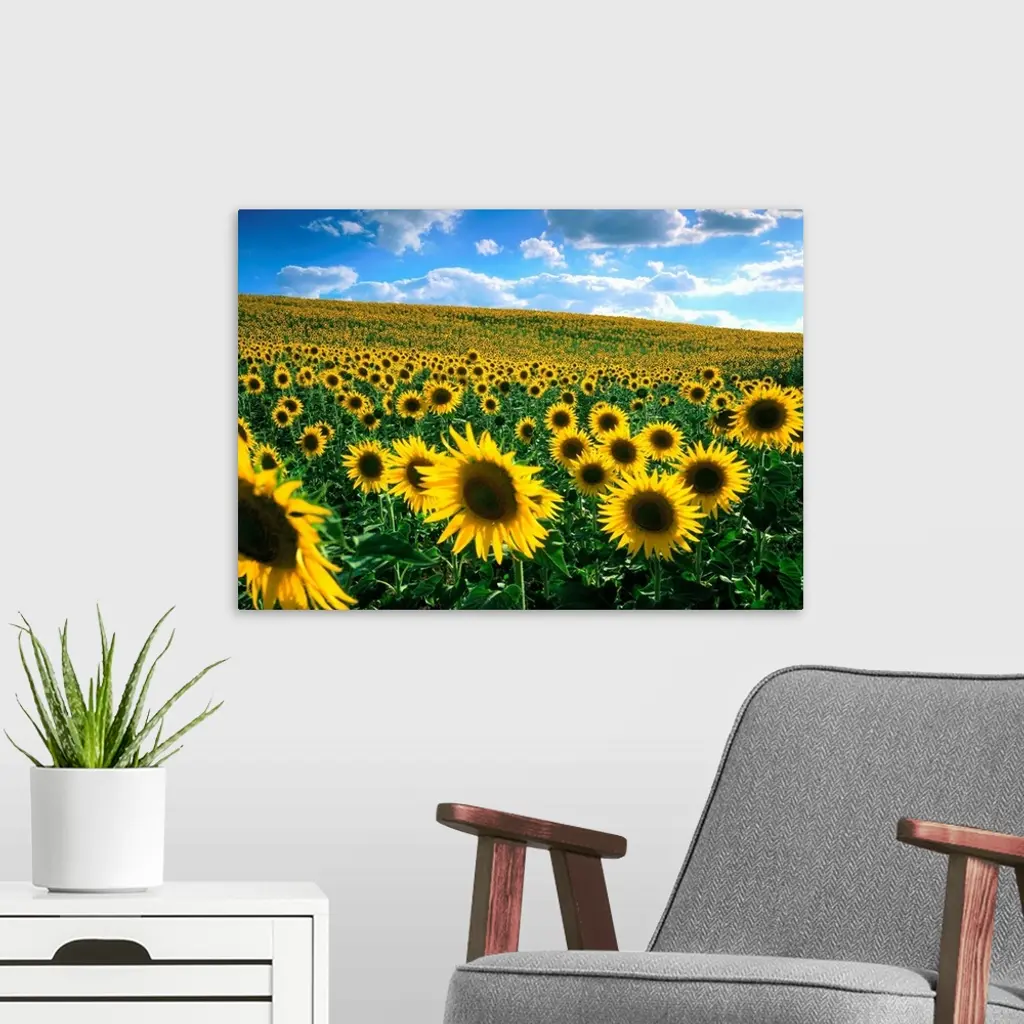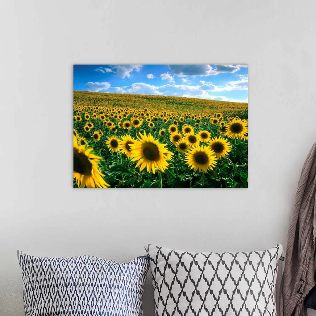 Sunflower field wall art for home and office decor. Discover canvas art prints, photos, mural, big canvas art and framed wall art in GreatBigCanvas.com's varied collections.
