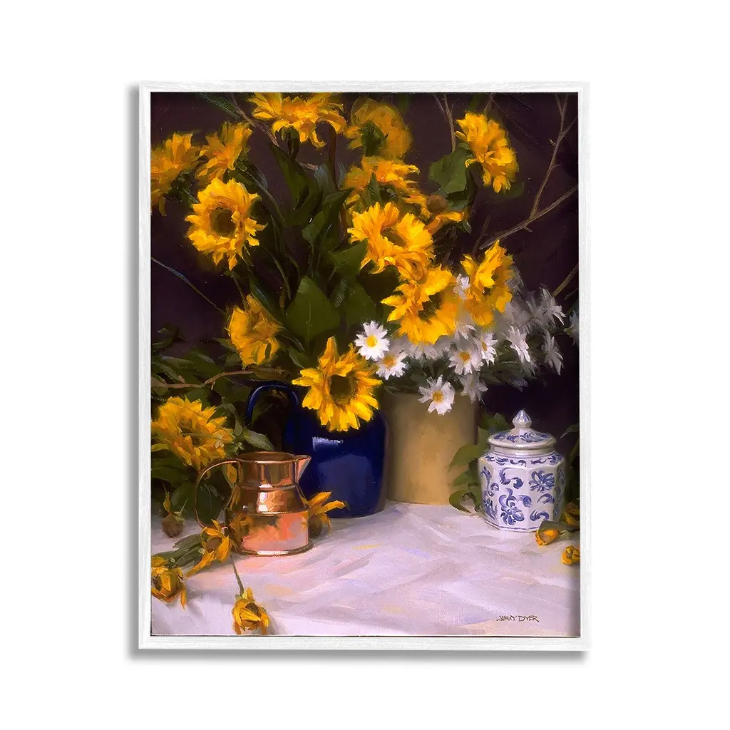 Sunflowers in a white vase.