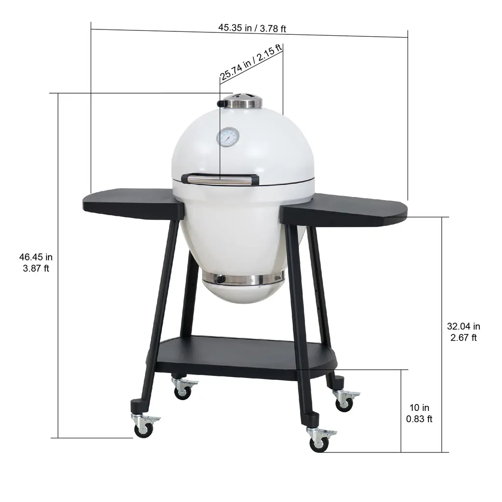 Introducing the Sunjoy 20 in. Egg-shaped Grill with Pizza Plate - your ticket to culinary excellence! Level up your grilling game with this versatile kamado-style BBQ Grill and Smoker. Its unique double-walled domed design and premium stainless steel liner construction ensures even heat distribution for perfect results every time. Sear your favorite meats to perfection or indulge in a slow roast, all with effortless precision. With adjustable top and bottom dampers, controlling airflow has never been easier, and the built-in thermometer lets you monitor the internal temperature with ease. This grill comes complete with a 304 food-grade stainless steel grate, a 13-inch cordierite pizza stone, and ample storage and workspace. Plus, the four universal wheels with brakes make mobility a breeze, and stability while in use a certainty. Choose from six stunning colors to match your style. Experience the ultimate in grilling convenience and flavor and make every meal memorable with the Sunjoy 20 in Egg-shaped Grill!•Level Up Your Grill Game: Kamado-style cooking with even heat distribution and high heat searing and low & slow roasting capabilities. 13-inch cordierite pizza stone included.•BBQ or Smoke With Precision: Features built-in thermometer for temperature monitoring and adjustable dampers for precise airflow control.•High-Quality Materials: The double-walled construction of this grill ensures durability and functionality, featuring a steel outer body and a 100% stainless steel liner. Additionally, it comes with two 304 food-grade stainless steel grill grates for premium cooking performance.•Designed with Function in Mind: Ample storage and workspace, four wheels with brakes for easy mobility and stability, and an easy-dump ash pan for hassle-free cleaning.•Large Cooking Area: With a total of 386 square inches of cooking area, this charcoal grill comes with a 13-inch diameter pizza stone, and a 2-piece removable grill grate that allows for a 2-zone grilling setup. Overall size: 46.22” L x 25.75” W x 46.46” H, Weight: 78.04 lbs.