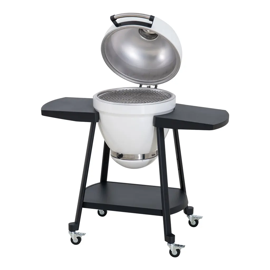 Sunjoy 20 In. Charcoal Grill, Egg-Shaped Outdoor Grill With Pizza Stone, Ultimate Bbq Grill And Smoker With Wheels - White