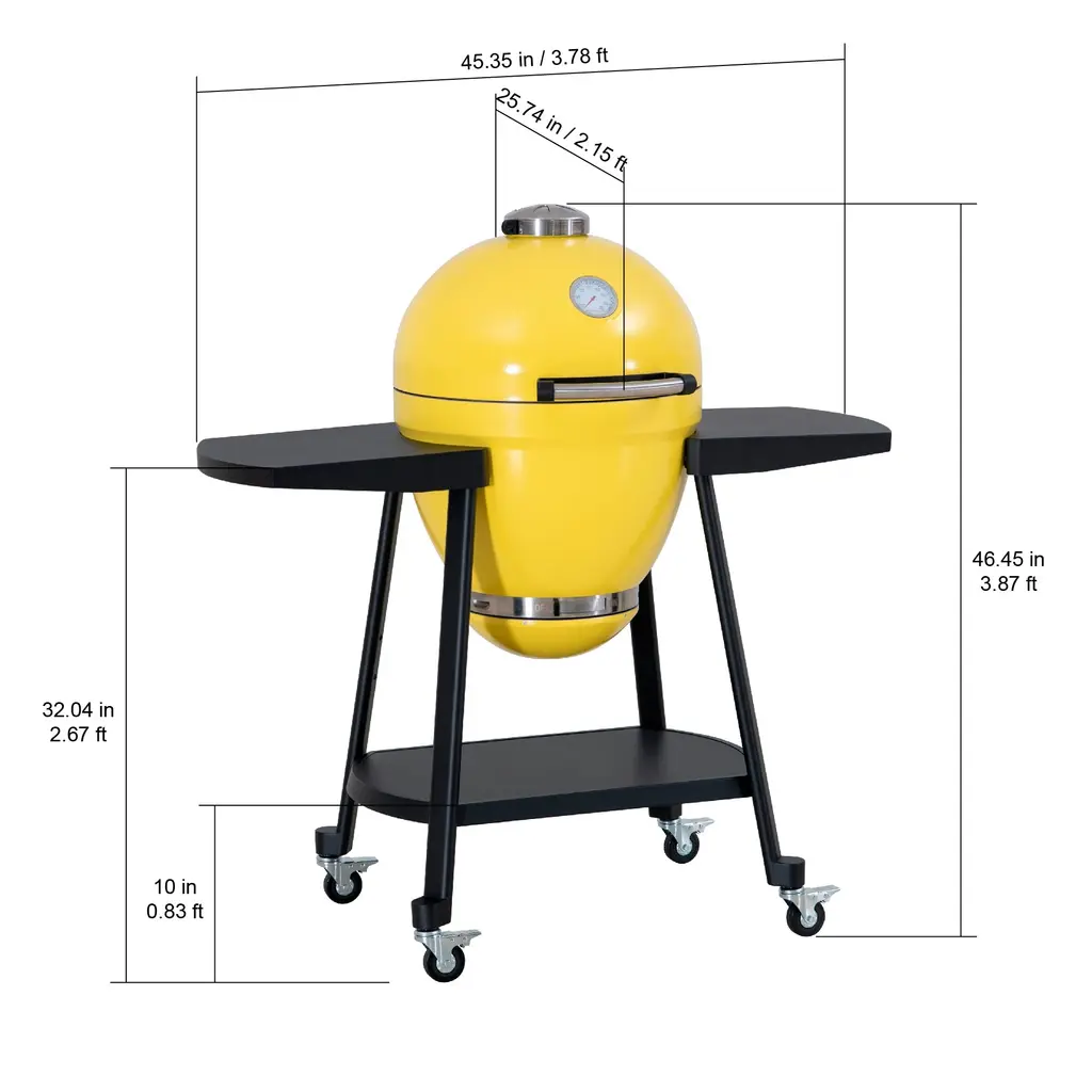 Introducing the Sunjoy 20 in. Egg-shaped Grill with Pizza Plate - your ticket to culinary excellence! Level up your grilling game with this versatile kamado-style BBQ Grill and Smoker. Its unique double-walled domed design and premium stainless steel liner construction ensures even heat distribution for perfect results every time. Sear your favorite meats to perfection or indulge in a slow roast, all with effortless precision. With adjustable top and bottom dampers, controlling airflow has never been easier, and the built-in thermometer lets you monitor the internal temperature with ease. This grill comes complete with a 304 food-grade stainless steel grate, a 13-inch cordierite pizza stone, and ample storage and workspace. Plus, the four universal wheels with brakes make mobility a breeze, and stability while in use a certainty. Choose from six stunning colors to match your style. Experience the ultimate in grilling convenience and flavor and make every meal memorable with the Sunjoy 20 in Egg-shaped Grill!•Level Up Your Grill Game: Kamado-style cooking with even heat distribution and high heat searing and low & slow roasting capabilities. 13-inch cordierite pizza stone included.•BBQ or Smoke With Precision: Features built-in thermometer for temperature monitoring and adjustable dampers for precise airflow control.•High-Quality Materials: The double-walled construction of this grill ensures durability and functionality, featuring a steel outer body and a 100% stainless steel liner. Additionally, it comes with two 304 food-grade stainless steel grill grates for premium cooking performance.•Designed with Function in Mind: Ample storage and workspace, four wheels with brakes for easy mobility and stability, and an easy-dump ash pan for hassle-free cleaning.•Large Cooking Area: With a total of 386 square inches of cooking area, this charcoal grill comes with a 13-inch diameter pizza stone, and a 2-piece removable grill grate that allows for a 2-zone grilling setup. Overall size: 46.22” L x 25.75” W x 46.46” H, Weight: 78.04 lbs.