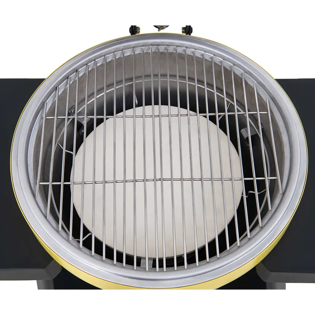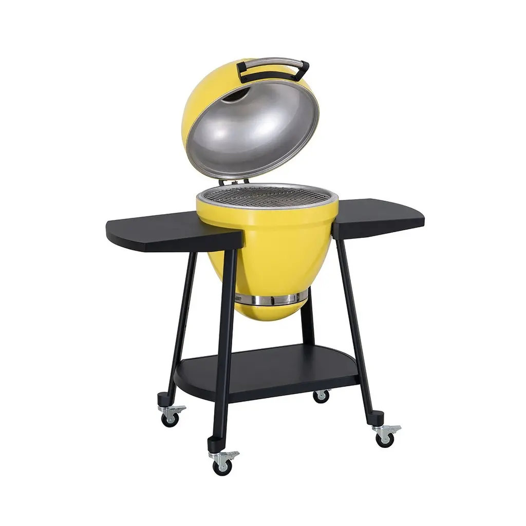 Sunjoy 20 In. Charcoal Grill, Egg-Shaped Outdoor Grill With Pizza Stone, Ultimate Bbq Grill And Smoker With Wheels - Yellow