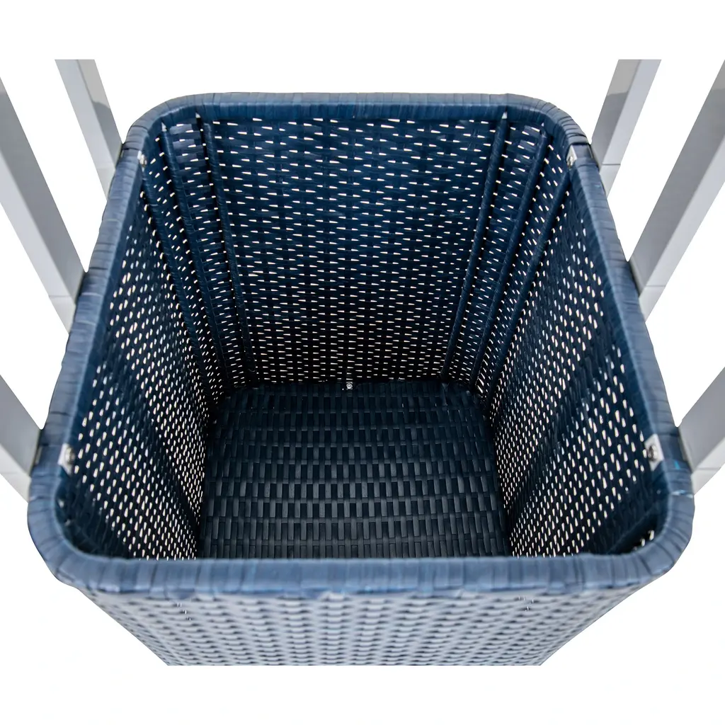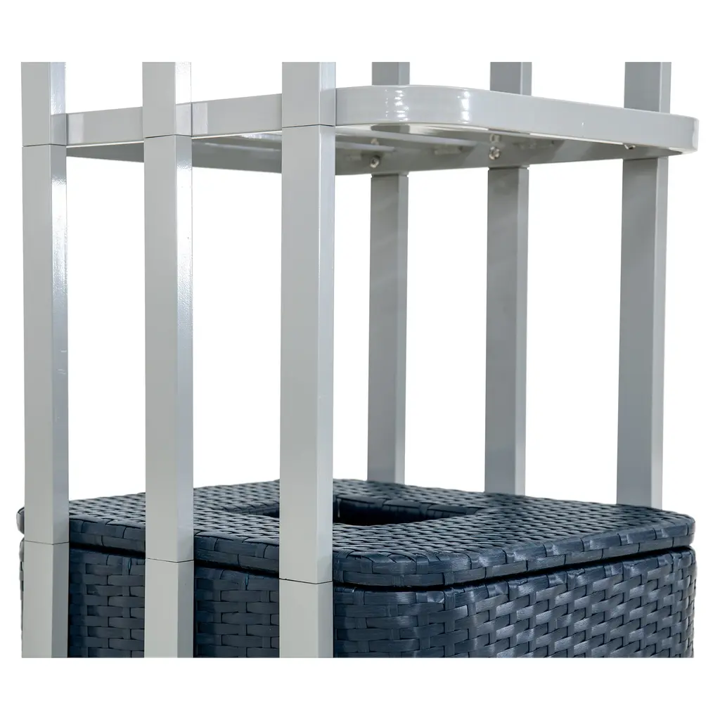 Introducing the Pickford Pool Towel Valet Tower in a sleek grey finish. This versatile pool storage solution offers two spacious shelves and a handy storage basket, ensuring ample room for all your poolside essentials. Crafted with waterproof, hand-woven rattan and a reinforced aluminum frame, it effortlessly tackles your storage challenges with style. No more dust worries, thanks to the included dustproof top cloth and four secure straps. Protect your floors with the plastic feet at the bottom. Elevate your pool area with this elegant and practical addition.