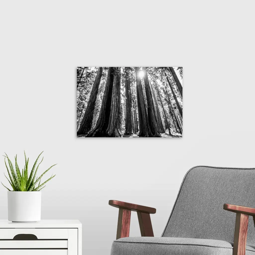 Sunlight Peeking Through Giant Sequoia Groves, California