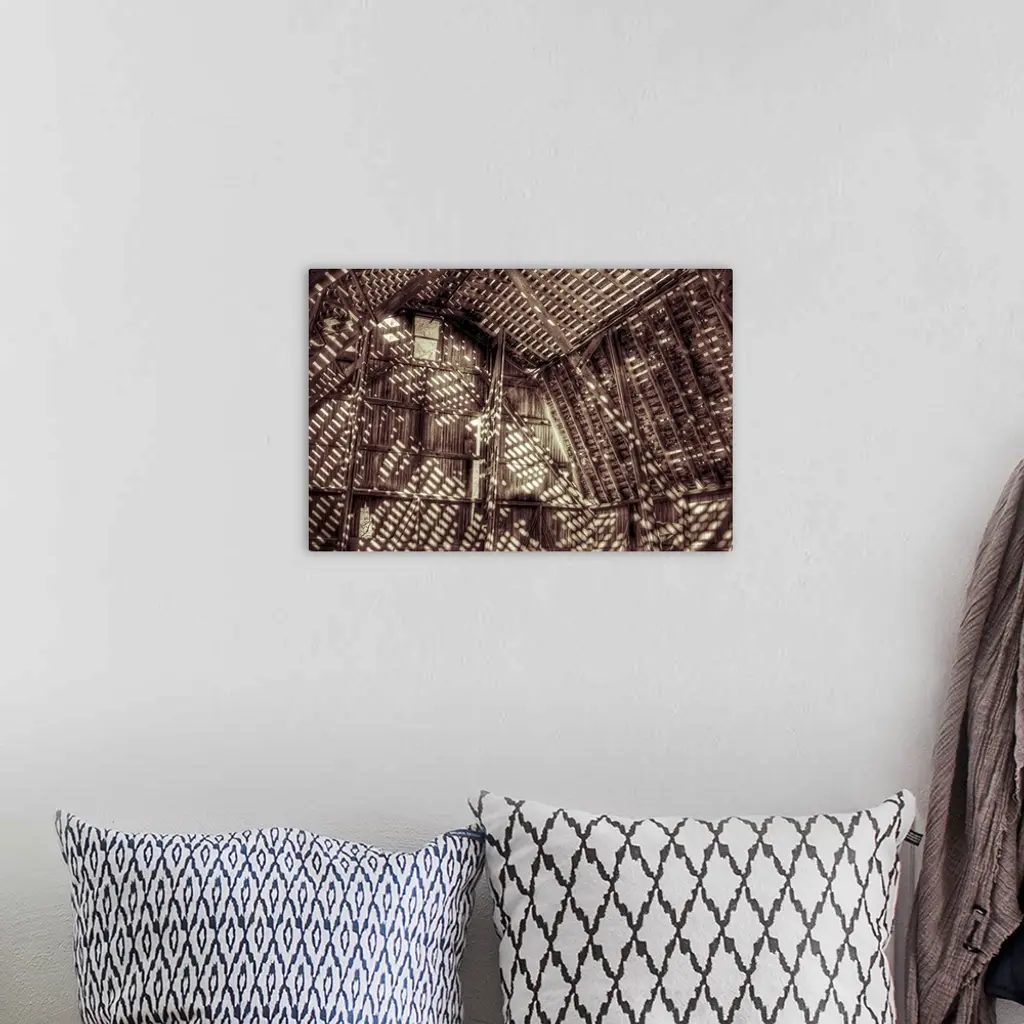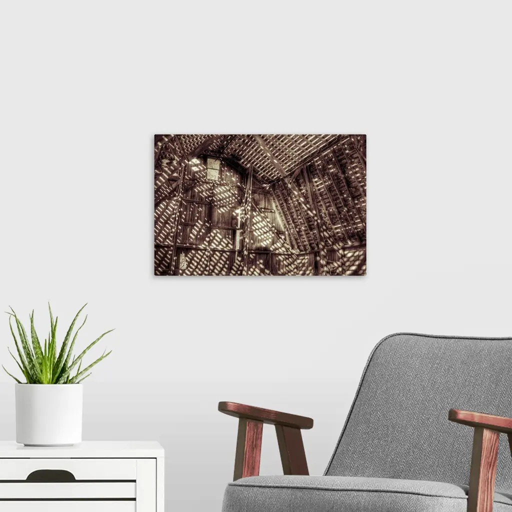 Sunlight Shinig Through Timbers In An Old Farm Building