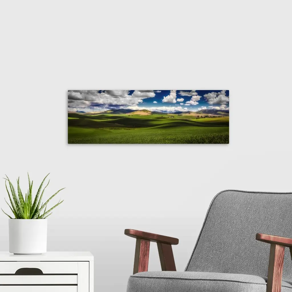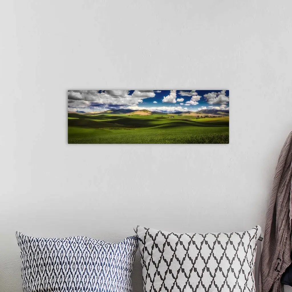 Sunlit Rolling Hills With Green Grain Fields And White Puffy Clouds, Palouse, Washington wall art for home and office decor. Discover canvas art prints, photos, mural, big canvas art and framed wall art in GreatBigCanvas.com's varied collections.
