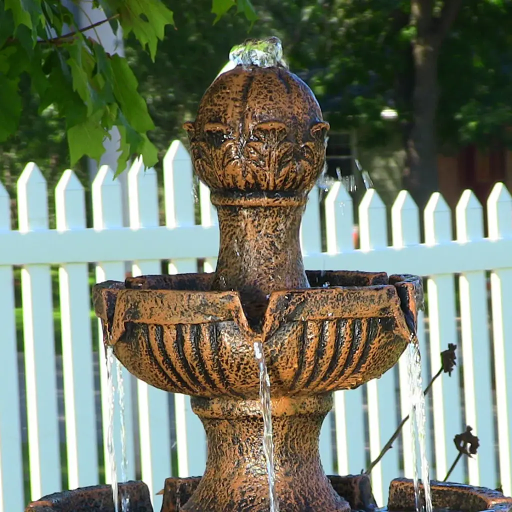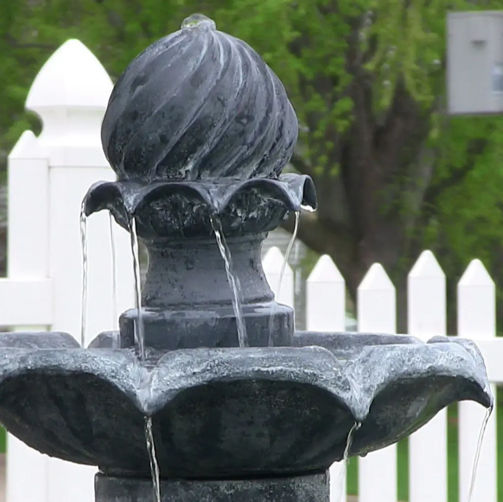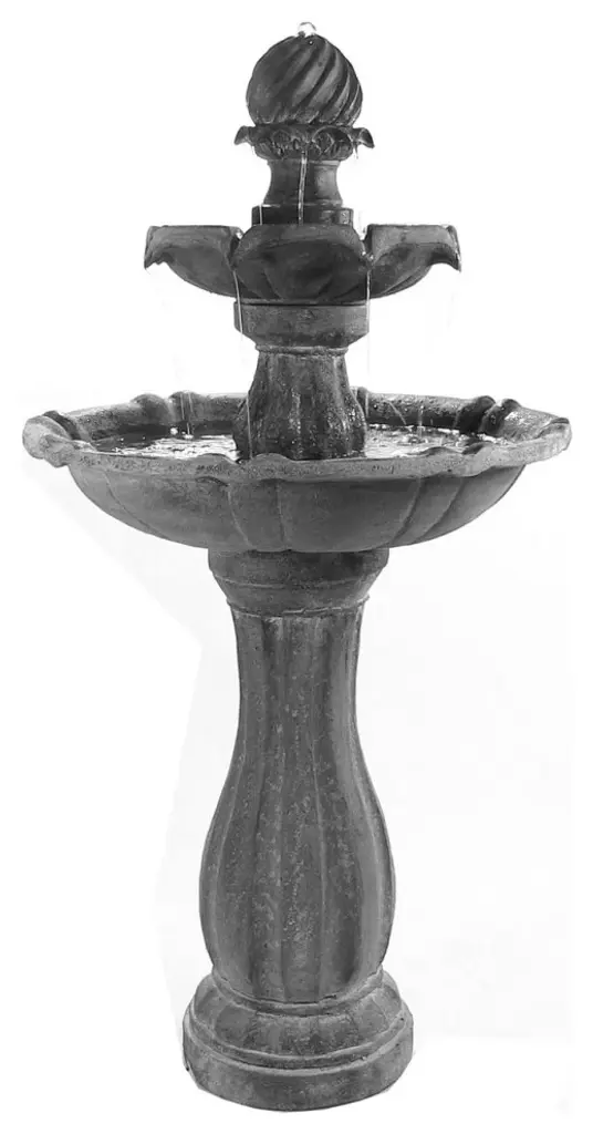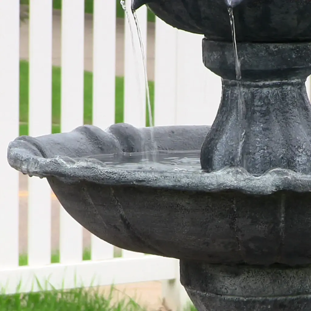 Add elegance and class to any garden, patio, porch, or deck with this stunning two-tier solar power fountain. The water gracefully flows from the top of the fountain down to the bottom tier where it then recirculates with the help of the included submersible pump. Plus, no plumbing is required; once the feature is assembled, simply connect the cord from the pump to the solar panel and place the panel in direct sunlight. No more unsightly extension cords running across the yard and hogging those plugins; just mount and conceal the panel in a sunny place and enjoy! The solar with battery backup option allows this fountain to harness energy even when there is no sunlight! The rechargeable battery pack charges throughout the day (with or without the fountain running) so the gentle water sounds can be enjoyed in the evening as well.