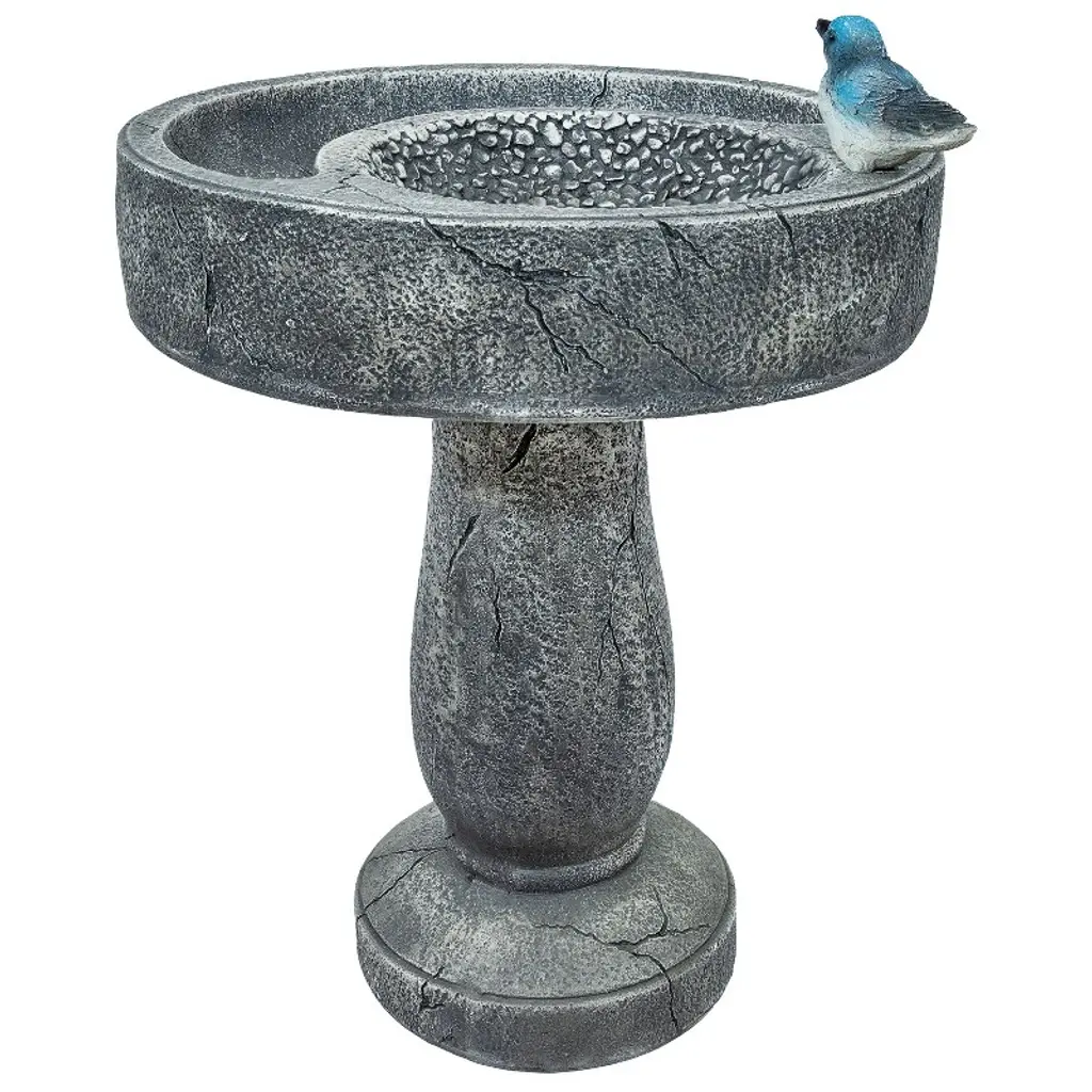 Attract a vibrant array of feathered friends to the garden with this versatile bird bath with pedestal and feeder combo. Crafted from lightweight yet durable polyresin, this charming piece is designed to effortlessly enhance any outdoor space. Standing tall at 27 inches, it offers ample room for birds to bathe and dine comfortably. The spacious 8-cup water basin provides a refreshing oasis for a variety of bird species, while the shallow depth ensures safety and accessibility. To entice even more feathered visitors, the integrated birdseed compartment offers a constant supply of nourishment. Its convenient size and lightweight construction make the resin bird bath for outdoors easy to place in any garden's prime bird-watching spot. Watch as the garden transforms into a lively hub of avian activity as birds flock to enjoy the refreshing water and delectable treats. Experience the joy of observing nature's wonders up close as it creates a thriving bird sanctuary in the backyard.• SIZED TO ACCOMMODATE MANY FEATHERED FRIENDS: The bird feeder and bath overall measures 19.5" in diameter x 27" H and weighs 15.6 lbs. The bath area will hold 0.5 gallons or 8 cups of water. The bird bath section is crescent-shaped and measures 16.5" W x 6.25" D x 3" H. The feeder compartment measures 10" in diameter x 2.5" D.• EASY TO MOVE AND MAINTAIN: Crafted from lightweight polyresin, this outdoor bird bath bowl with birdseed compartment is easy to relocate and position for optimal bird-watching in any garden.• PROVIDES ESSENTIAL HYDRATION: The 8-cup water capacity of the short bird bath for outside provides birds with a comfortable shallow depth and a place to get a cool drink of water.• ATTRACTS A VARIETY OF BIRDS: The shallow 3" bowl depth of this outdoor bird bath allows birds of most sizes to bathe comfortably and securely.• WORRY-FREE PURCHASING: Sunnydaze Decor backs its products with a 1-year manufacturer's warranty.