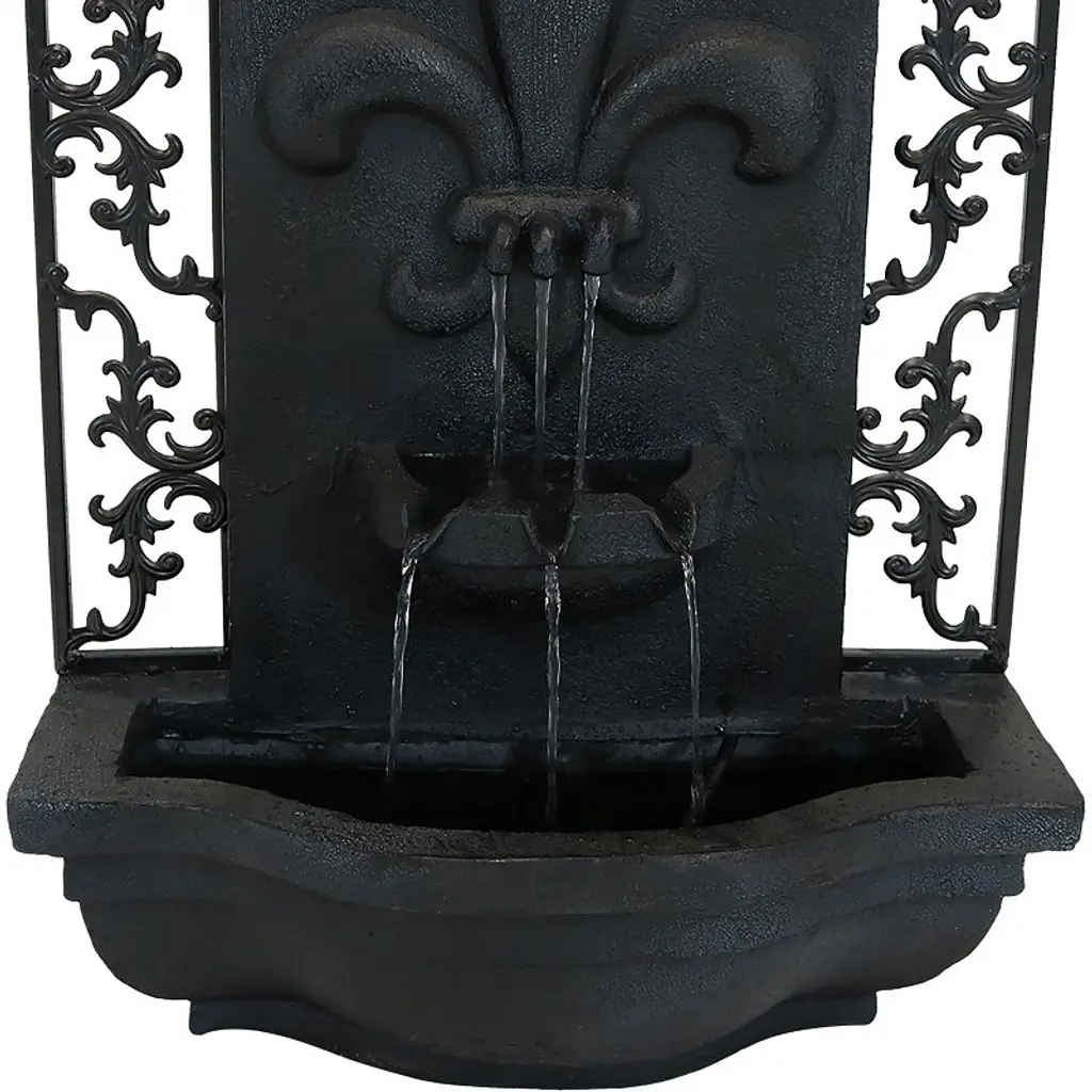 Reminiscent of classic French designs with a fleur-de-lis featured in its center, this unique solar wall fountain emanates class and sophistication. Made from polystone material, this fountain is lightweight enough to be mounted by one person, and durable enough to last for years. Use the included solar panel to power your outdoor decor. No more unsightly extension cords running across the yard and hogging outdoor outlets. Mount and conceal the solar panel in a sunny place and enjoy!• ADD ATTRACTIVE DECOR TO ANY SPACE: Make a statement in your garden, front porch, deck, lawn, and exterior space with this stunning outdoor wall fountain. It measures 20" W x 9" D x 33" H and weighs a sturdy 18 lbs with a recommended water capacity of 3 gallons.• DURABLE CONSTRUCTION THAT'S BUILT TO LAST: The wall fountain is made from durable polystone material to ensure it will be long lasting while resembling the appearance of a beautiful stone.• UNWIND TO SOOTHING WATER SOUNDS: Sit back, relax, and enjoy the relaxing sounds the wall hanging fountain creates as water gently trickles down into the bottom basin and circulates through the fountain.• EASY TO USE: The solar wall waterfall fountain only needs sunlight to run properly and mounts against any surface using a sturdy hook, screw, or nail for easy and quick assembly. The included submersible water pump features a 16 foot long power cord so you can conveniently place the solar panel in a sunny location.• WORRY-FREE PURCHASING: Sunnydaze Decor backs its products with a 1-year manufacturer's warranty.