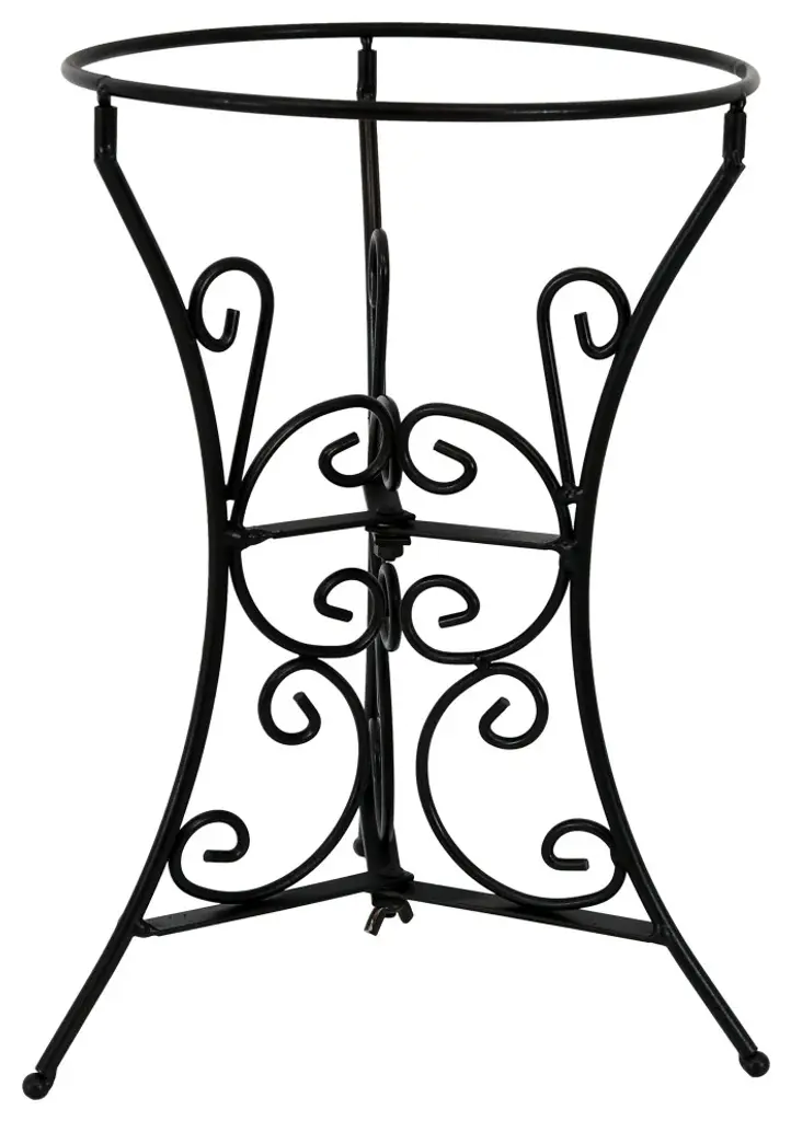 Display a decorative gazing globe in any garden, patio or backyard with this stand. Made of steel, this stand features an attractive black powder-coated finish that gives it a more polished look. The delicate scrollwork lends an air of elegance to this piece of outdoor decor. This stand is designed to fit 10" to 12" gazing balls, providing a stable base to show off these pieces of decor. Please note, a gazing globe is not included.