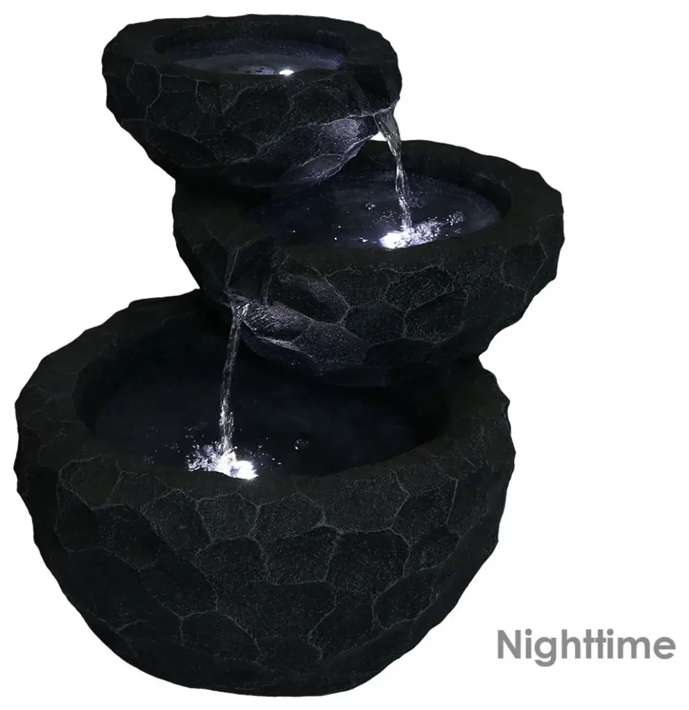 Sunnydaze Chiseled Basin Small Outdoor Solar Fountain, 3-Tier, Solar-On-Demand