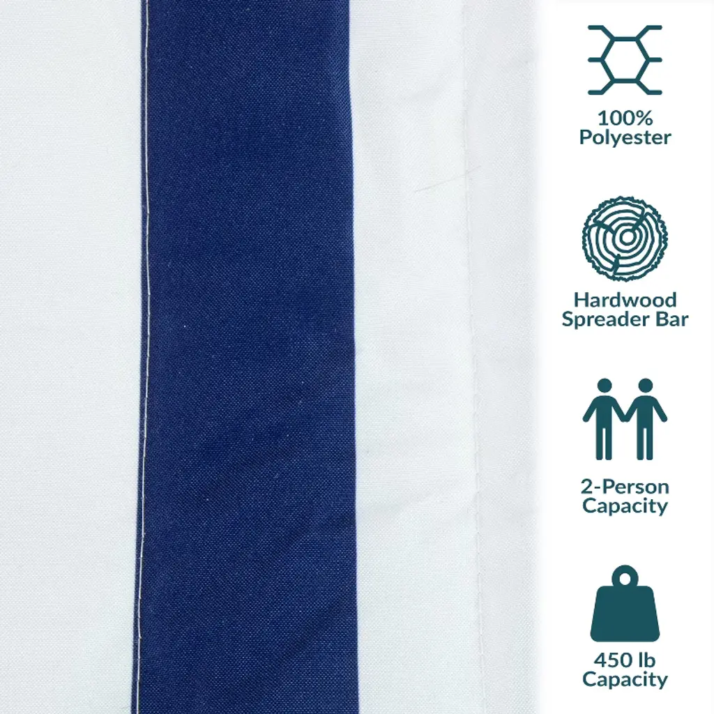Sunnydaze Extra-large 2-person Quilted Outdoor Hammock With Spreader Bars - 450 Lb Capacity - Blue And White Stripe
