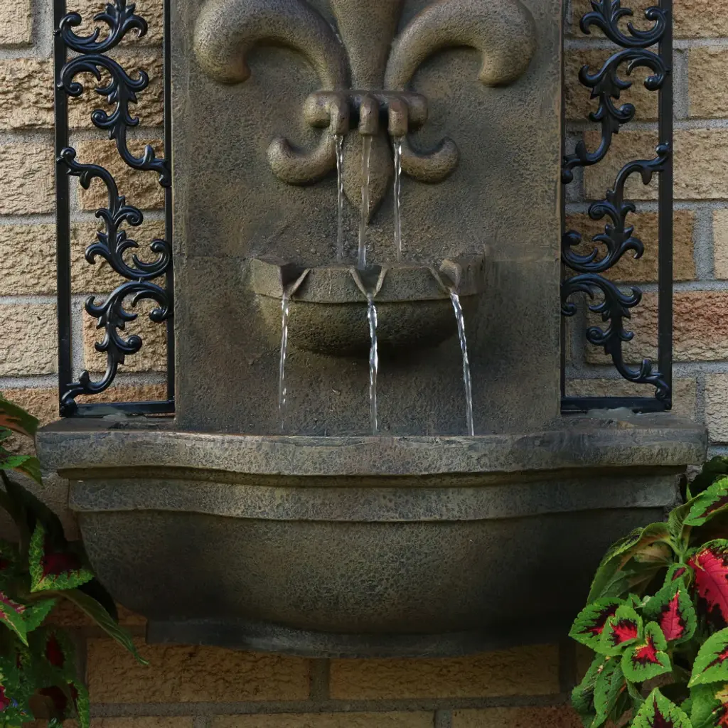 Sunnydaze French Lily Electric Outdoor Wall Fountain, Florentine Stone