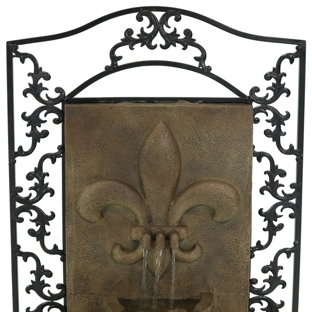 Reminiscent of old French design with a classic fleur-de-lis featured in center, this unique electric outdoor wall fountain emanates class and sophistication so it is perfect for the patio or garden wall. Enjoy the gentle sounds of water on the deck, patio or gazebo. Simple installation and hook up, just hang, plugin and enjoy! The cream florentine finish is a nice fit for most natural color schemes.