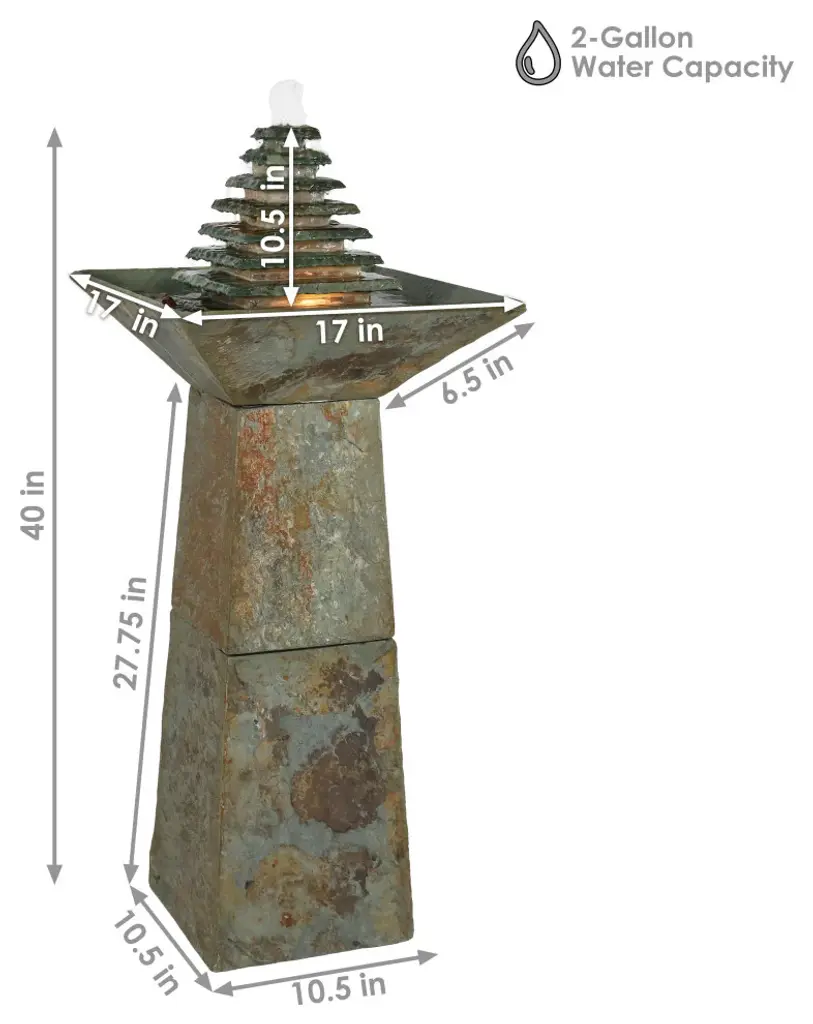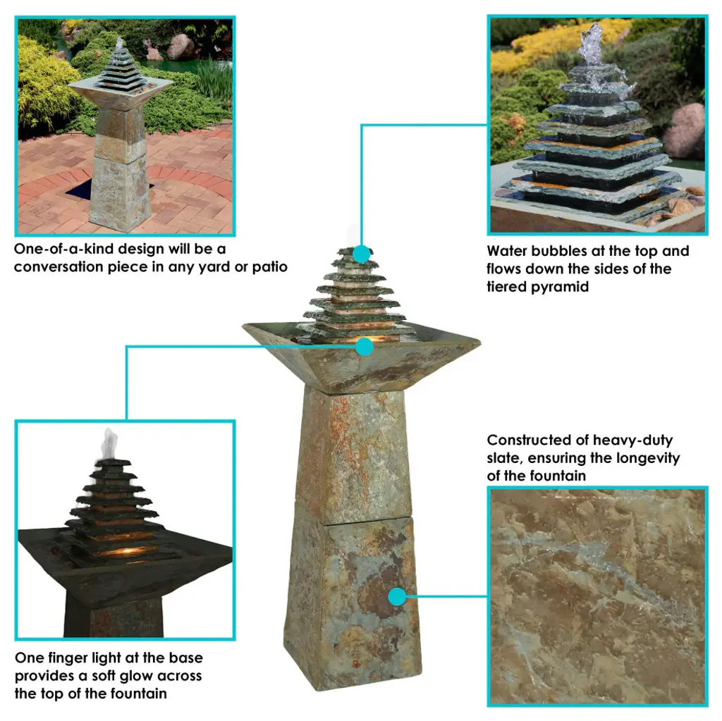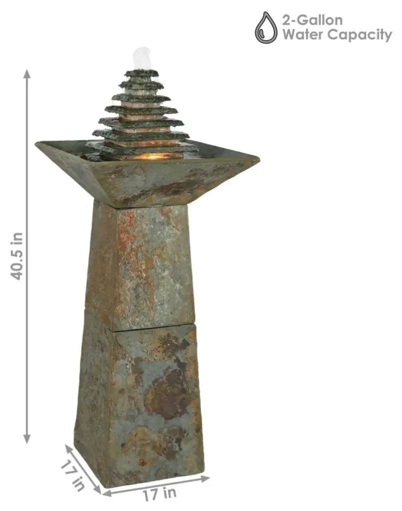 Sunnydaze Layered Slate Pyramid Outdoor Water Fountain With Led, 40"