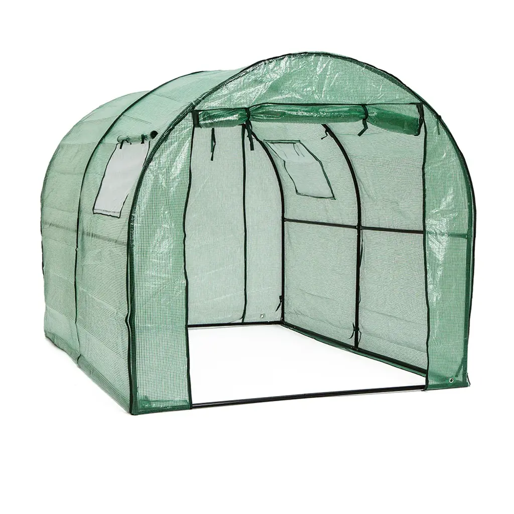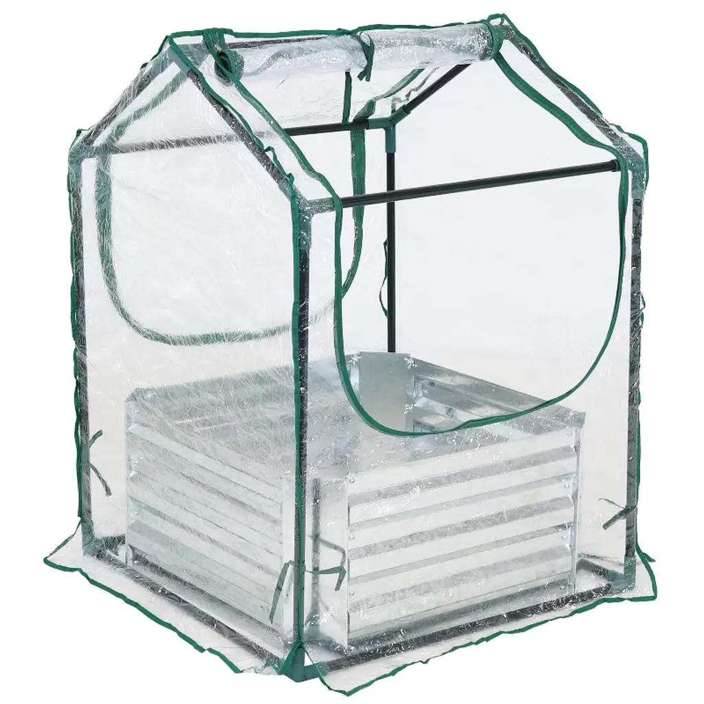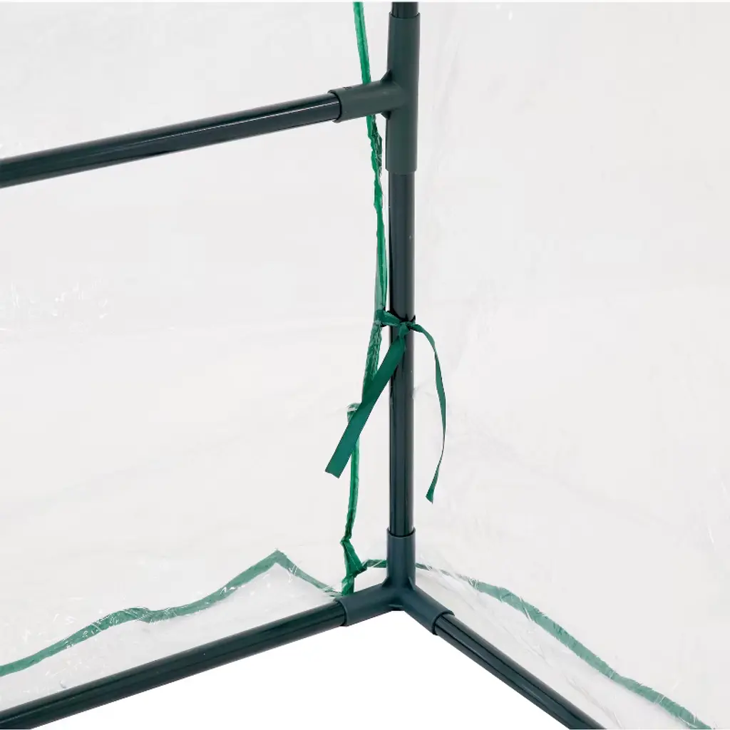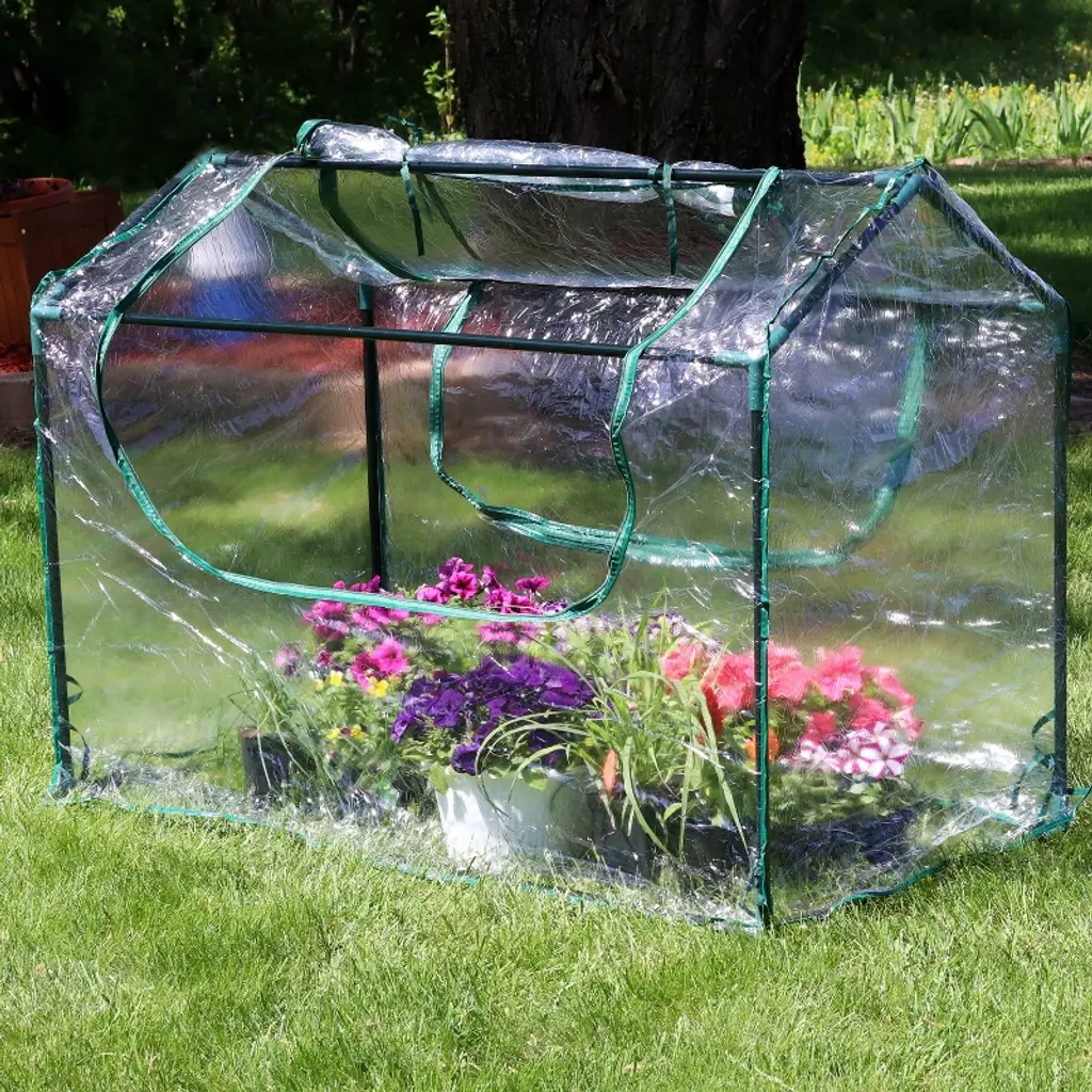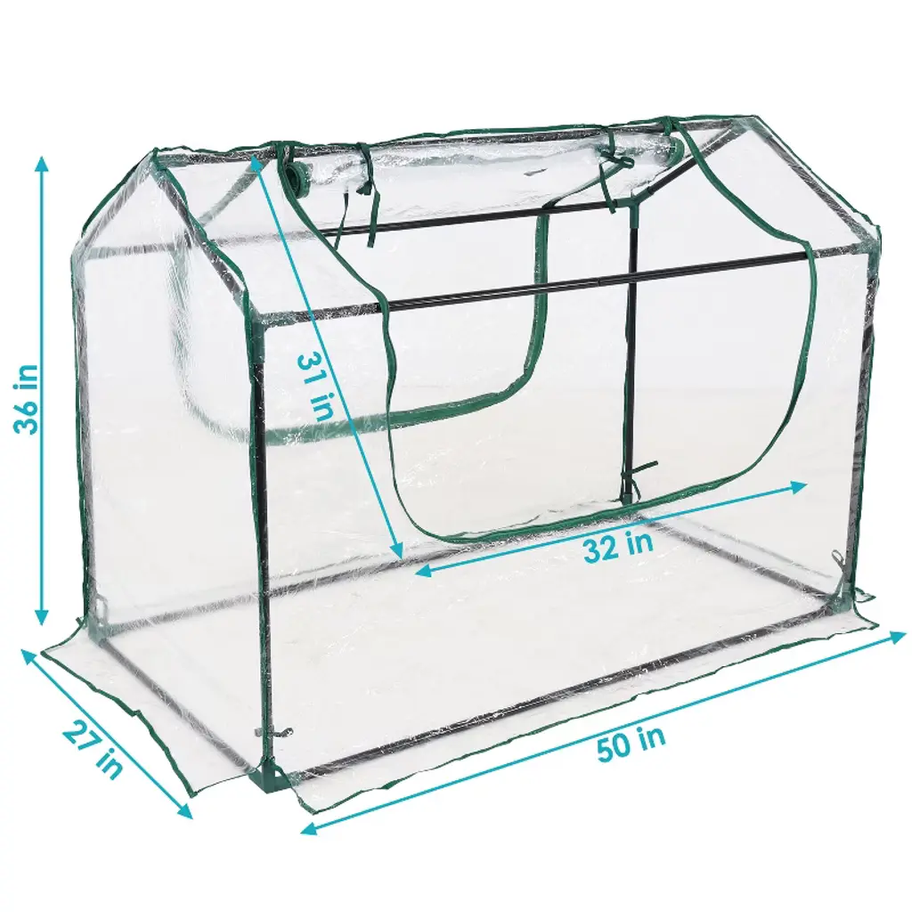 This mini outdoor greenhouse provides a practical solution for extending the growing season and protecting delicate plants. Designed with a durable iron tube frame and a reinforced PVC cover, it offers strength and weather resistance while maintaining consistent humidity and warmth inside. Measuring 50" wide by 27" deep and 36" high, it fits comfortably in small outdoor spaces like patios, decks, and gardens. Two doors with zippered openings allow convenient access to plants for watering, trimming, and harvesting without disturbing the structure. The compact design supports the healthy growth of vegetables, herbs, and flowers by shielding them from harsh elements and pests. The roll-up flap can be secured in place for ventilation, helping regulate airflow and temperature as needed. Whether used to start seedlings, grow produce, or protect blooms from early frost, this greenhouse creates a controlled environment that promotes thriving plant life in any outdoor setting.• GROW MORE IN SMALL SPACES: This compact greenhouse fits easily on patios, balconies, or yards, making it possible to grow vegetables and flowers in limited outdoor areas. It measures 50" W x 27" D x 36" H and weighs 4.8 lbs.• PROTECTS PLANTS YEAR-ROUND: The patio greenhouse features a PVC cover that helps trap heat and humidity while shielding plants from wind, pests, and sudden temperature drops. The iron tube frame offers solid structural stability, resisting bending or sagging over time and through varying weather conditions.• QUICK ACCESS WITH DUAL DOORS: The outdoor mini greenhouse has two zippered doors that open smoothly, allowing easy entry for watering, pruning, or harvesting without disturbing the entire structure. Each door measures 31" L x 32" W.• EFFICIENT GROWING ENVIRONMENT: With its enclosed design, this cloche greenhouse maintains a controlled microclimate that encourages healthy plant growth.• WORRY-FREE PURCHASING: Sunnydaze Decor backs its products with a 1-year manufacturer's warranty.