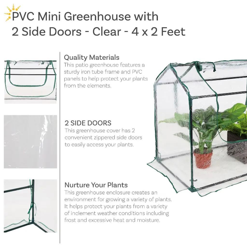 Sunnydaze Mini Greenhouse With 2 Zippered Side Doors - 4' X 2' - Clear