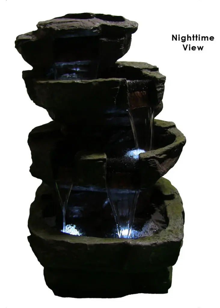 Sunnydaze Outdoor Electric Tiered Stone Waterfall With Led Lights, 23"