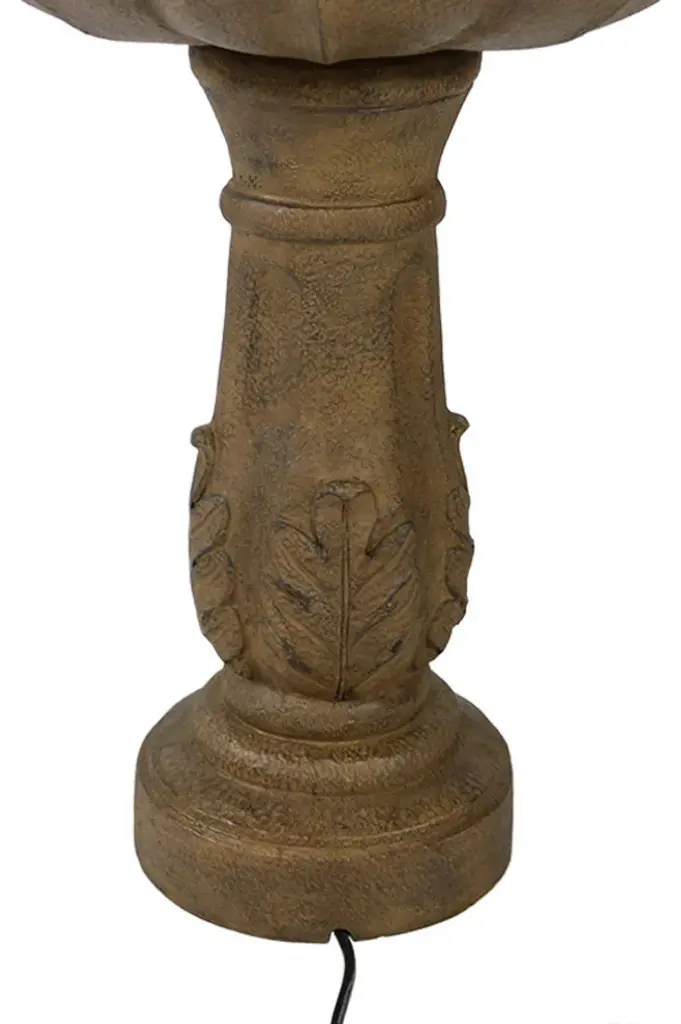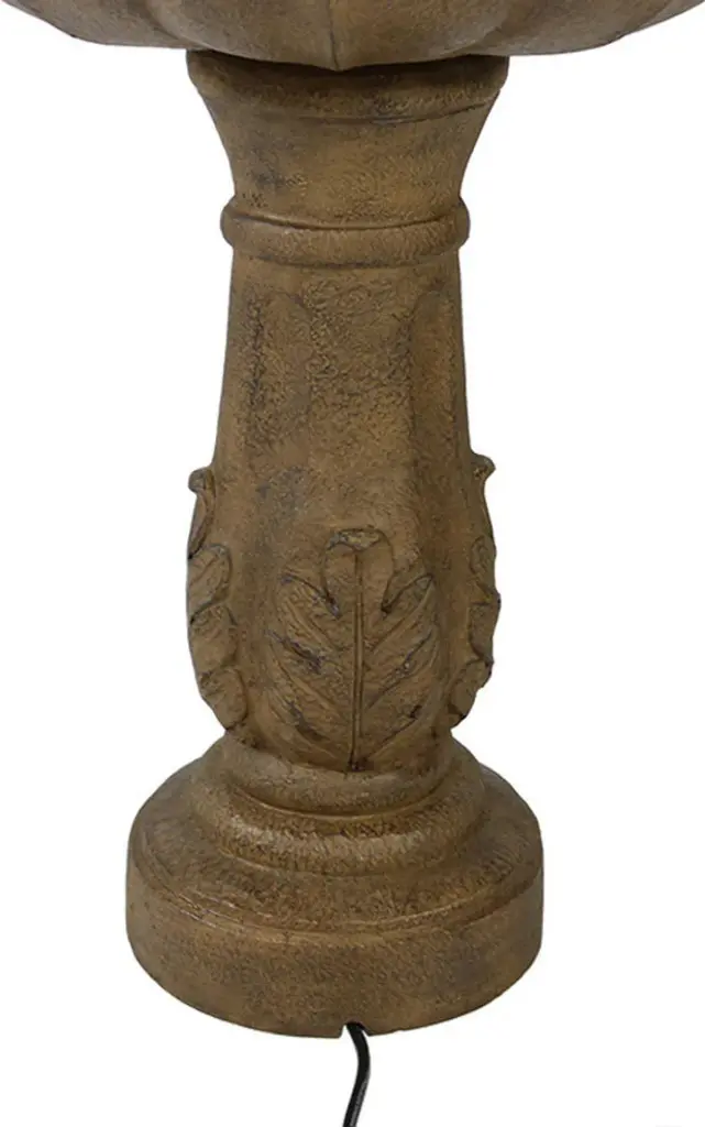 This electric water fountain will add elegance and charm to any outdoor space. Each fountain features a scalloped detailed edge of both tiers as well as a blooming flower topper. The details also continue through to the bottom pedestal of the fountain adding extra style and charm. The sounds of the water flowing from the top tier to the largest tier and recirculating are very relaxing. The perfect end to a long day, this feature will encompass any patio with serenity and peace. Plus, no plumbing is required; simply plug it into a standard electrical outlet once it has been assembled and filled with water.