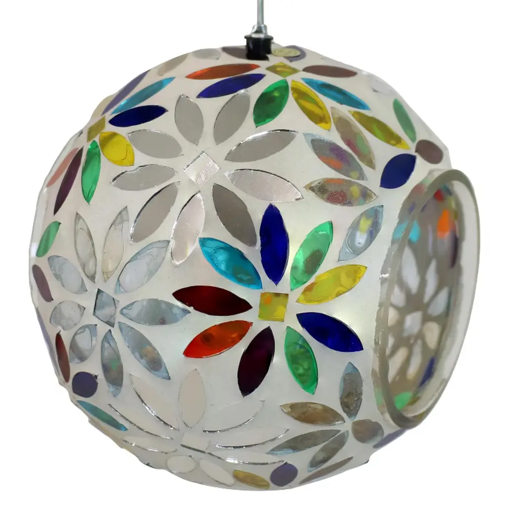 Sunnydaze Outdoor Garden Patio Round Glass With Mosaic Daisy Design Hanging Fly-through Bird Feeder - 6" - Blue, Red, Green, Yellow, And White