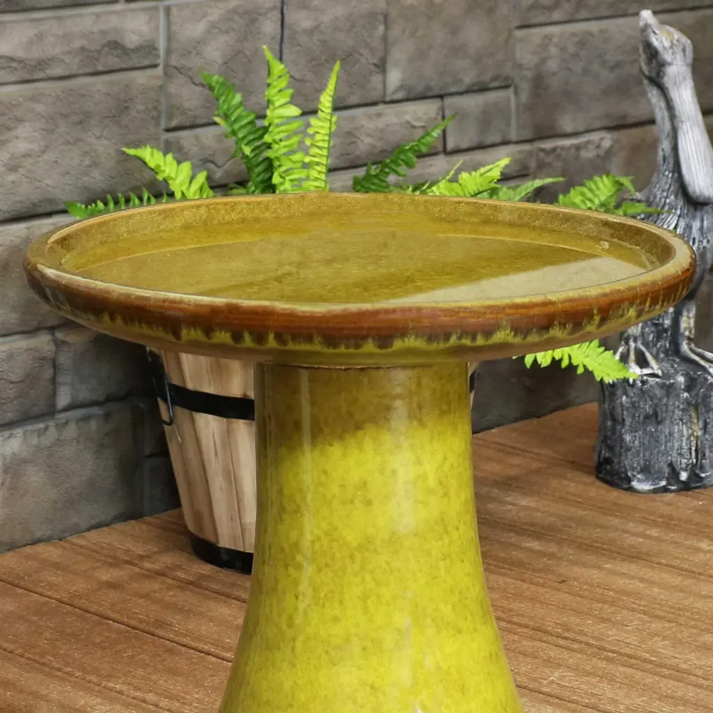 Sunnydaze Outdoor Weather-resistant Garden Patio High-fired Smooth Ceramic Hand-painted Duo Tone Bird Bath - Cognac Yellow