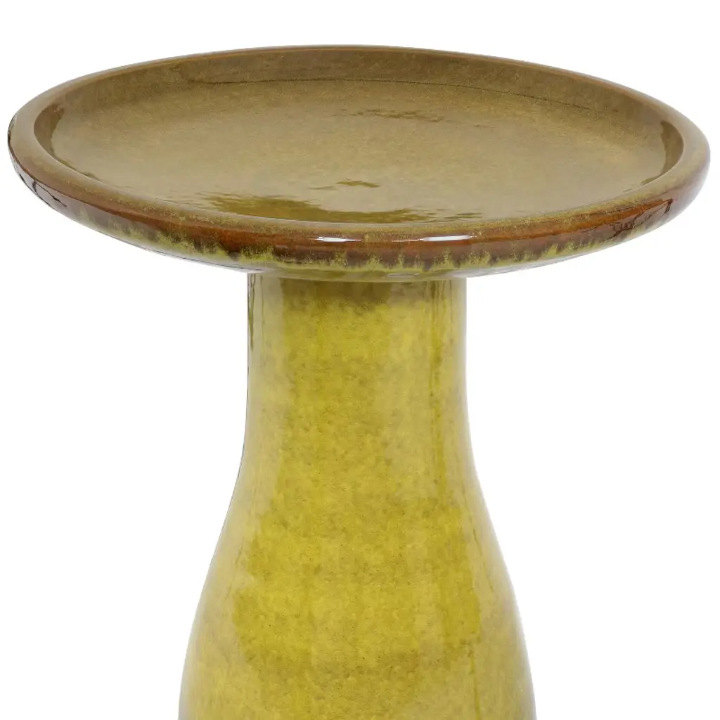 Welcome birds to the yard, garden, entryway, walkway, patio, or any other outdoor space with this beautiful, eye-catching, hand-painted, glazed ceramic bird bath. Both functional and stunning, the bird bath's classic and sleek design makes a wonderful addition to any outdoor space. It's sure to accent any modern, contemporary, or natural aesthetic with its lovely swirl design. Made from durable ceramic with a glazed finish, this bird bath's smooth surface is easy to keep clean to encourage birds to keep visiting. The bath bowl is 18" in diameter and holds up to 1 gallon of water, providing plenty of space for wild birds to perch and refresh in any outdoor setting. The bird bath is also easy to assemble. Simply twist the bath bowl onto the pedestal, fill with water, and enjoy. Place this bird bath feature in your garden, yard, patio, or other landscaping area to uplift any space and watch the birds flock.• LARGE WATER CAPACITY: This pedestal bird bath measures 18" in diameter x 21" H. The bowl measures 18" in diameter (16" inner) x 4" H with a 1.5" bowl depth. The base measures 10.5" in diameter x 18.5" H. The inner base diameter measures 9" at the bottom and 3.5" at the top. The hollow interior has a height of 17.75". The bird bath weighs 38.2 lbs and holds 1 gallon of water.• STRONG AND STURDY: This outdoor bird bath is made from durable ceramic with a mineral glaze finish for long-lasting beauty. This bird bath is resistant to weather, UV rays, and frost. Please note, variations in color may occur due to manual glazing and the unique kiln process.• STYLISH OUTDOOR ACCENT: This ceramic glazed bird bath for outdoors can be placed on the patio, in the yard, or in the garden for a beautiful outdoor accent. It features a wide, shallow bowl which makes it easy for a variety of birds to preen and bathe.• EASY 2-PIECE ASSEMBLY: This garden bird bath can be assembled in minutes. Simply align the grooves under the bowl with the notches of the pedestal and twist the bowl clockwise to lock it in place.• WORRY-FREE PURCHASING: Sunnydaze Decor backs its products with a 1-year manufacturer's warranty.