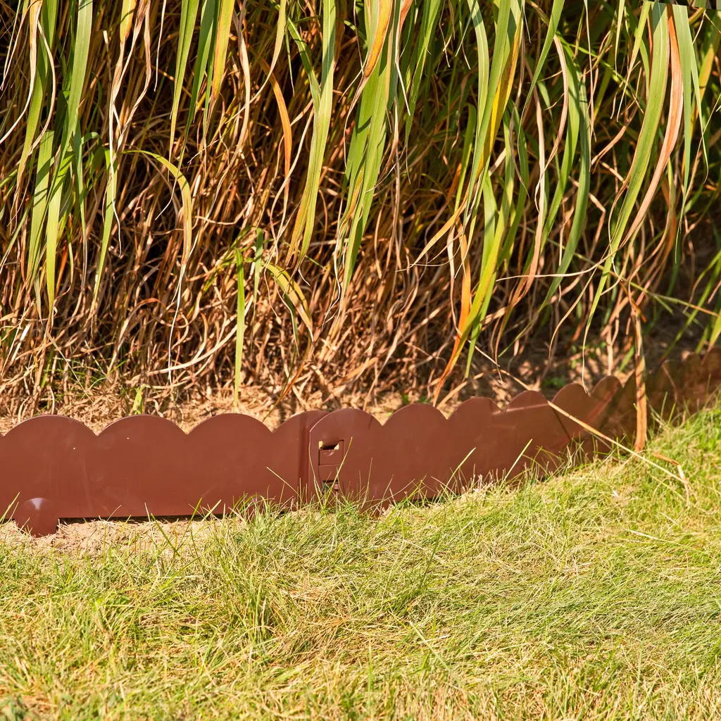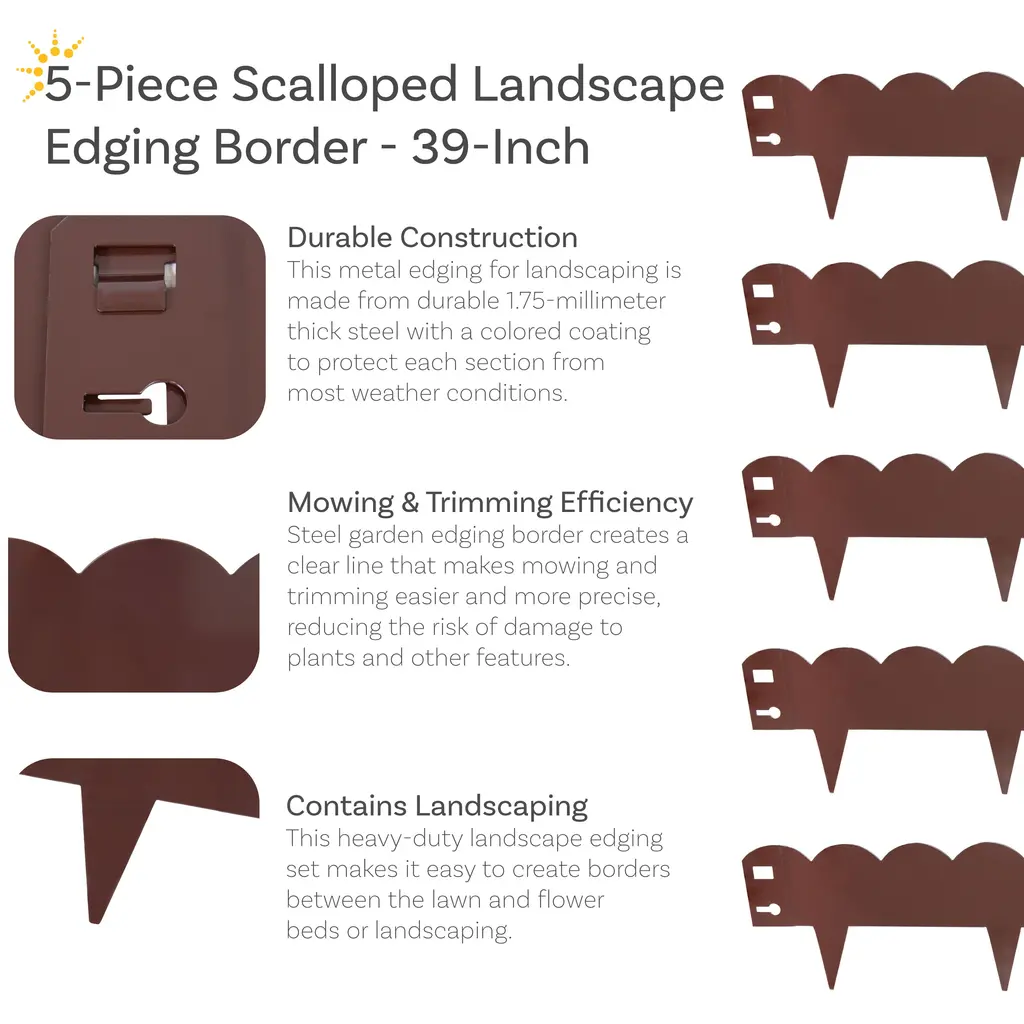 Sunnydaze Scalloped Metal Landscape Edging - Set Of 5 - 41.75" Sections - Brown