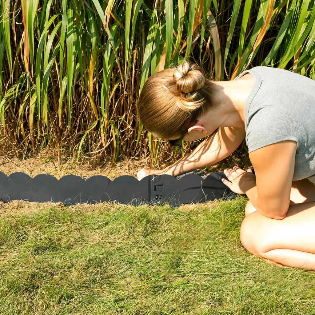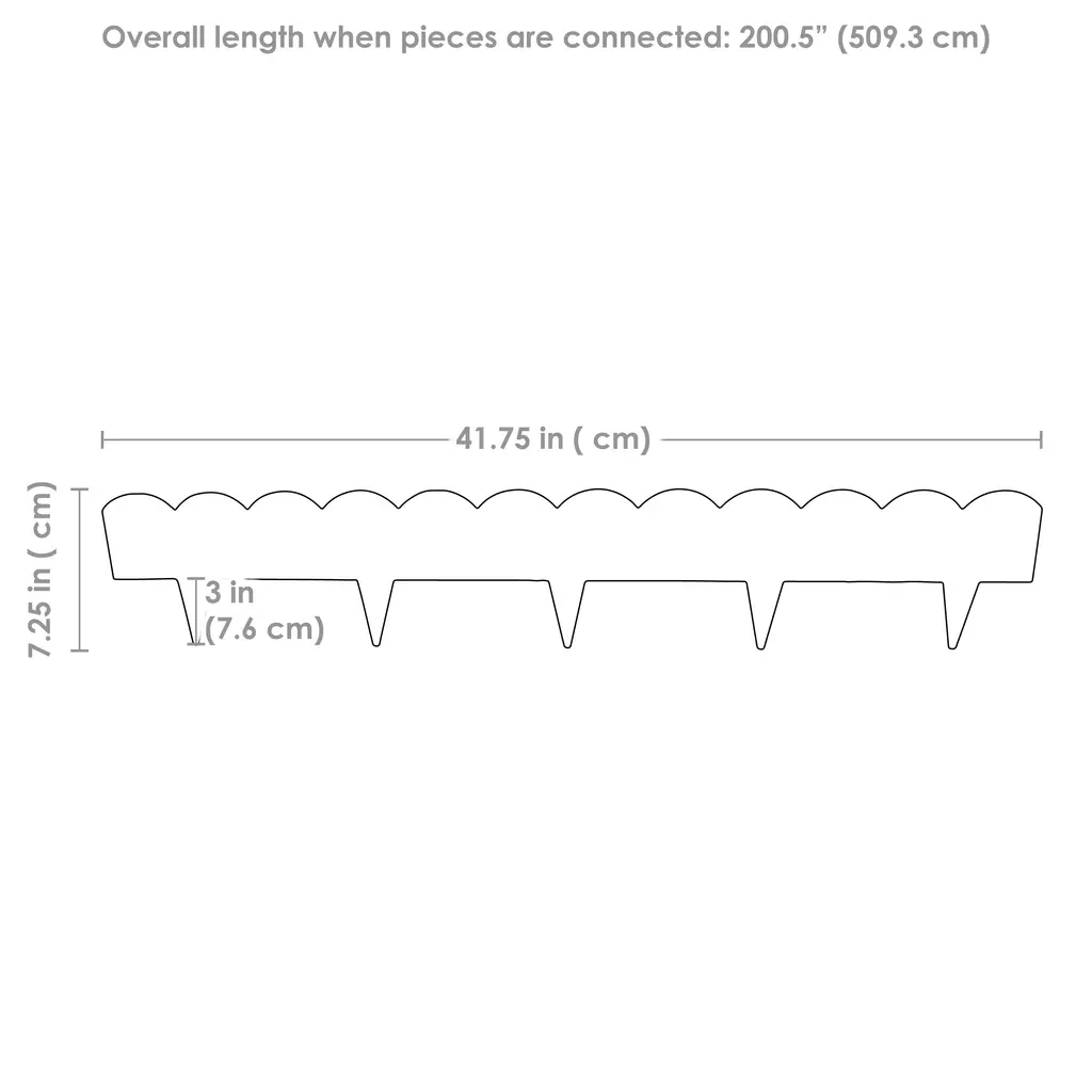 SKU: HBM-2155 / HBM-2225 / HBM-2395 Spruce up any lawn, garden, or flower bed with this easy-to-install steel garden border edging. Made from strong yet flexible steel and finished with a colored coating for weather protection, this edging creates crisp, beautiful borders around any landscaping feature. The steel edging comes in interlocking 41.75-inch sections for easy assembly. Each section has sturdy spikes at the bottom to secure it in the ground, and the ends lock together seamlessly. With all the pieces connected it adds up to over 16 feet. Want to add some charm to the patio or garden? Install this edging to create a defined space for attractive plants and bushes. It's also great for creating designated areas for flower beds, keeping any plants contained and adding a polished look to any landscaping. No matter where it’s placed, this edging will add a touch of definition and style to any outdoor space. Features: Additional Details: The digital images we display have the most accurate color possible. However, due to differences in computer monitors, we cannot be responsible for variations in color between the actual product and your screen.