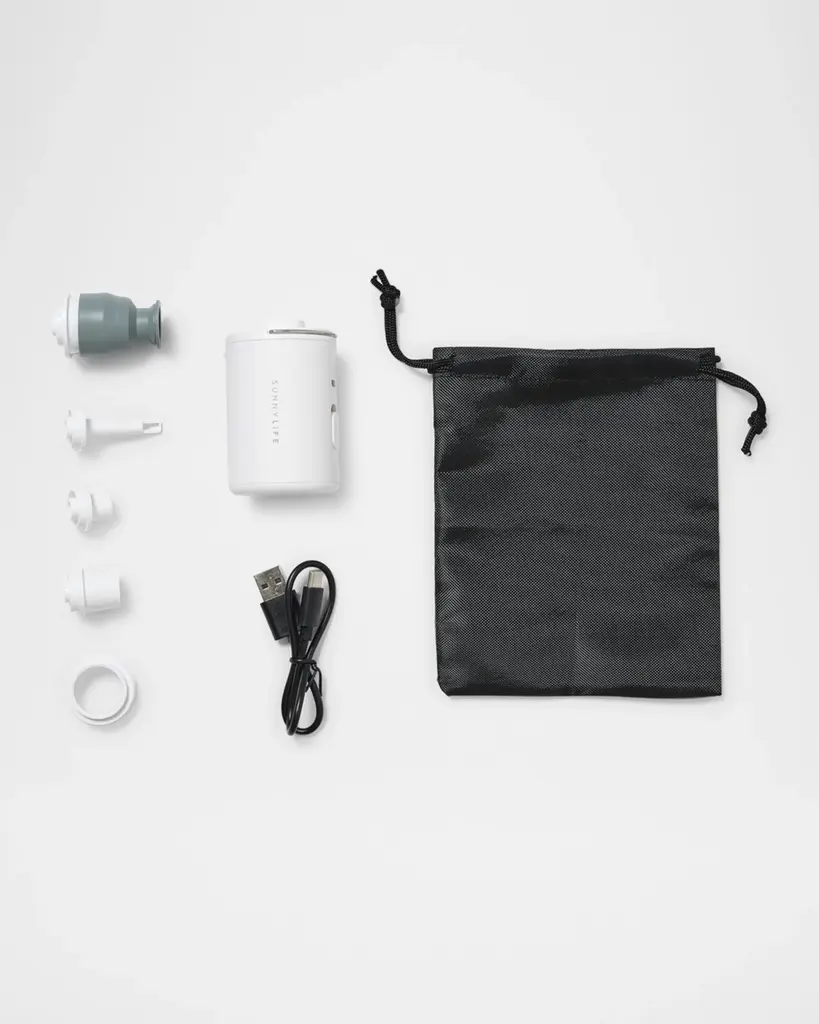 Inflate with ease! The travel-sized, cordless Electric Air Pump makes setup a breeze. Get ready for fun! Set includes: USB charge cable, storage bag, and nozzles Inflation Pressure: 4.0 kPa (0.58 psi) Air Flow: 180 L/min (47.55 gal/min) Battery life: 20 minutes Charging time: 1.5 hours Approx. 2"L x 1.8"W x 2.8"T Item Weight (Lbs.): 0.1 ABS/metal Wipe clean Imported Proposition 65 warning for California residents About SUNNYLiFE: Founded in Australia in 2003, SUNNYLiFE is a summer lifestyle brand that creates luxe summer essentials inspired by the Aussie beach lifestyle. Conceptualized and designed in the eastern suburbs of Sydney, SUNNYLiFE was established with a simple goal: to share Australia’s authentic summer style with the rest of the world. Today, they help bring people together to enjoy an endless summer by creating stylish and innovative products that last year after year. SUNNYLiFE brings joy to the pools, beaches, and sun-drenched holiday destinations around the world.